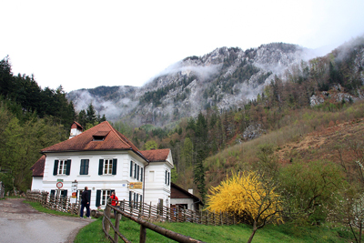 Proti večeru smo se odpeljali naprej proti severu Avstrije, do vstopa v sotesko Bärenschützklamm (soteska zavetišče medvedov). Po okrepčilu se je stemnilo, ohladilo in tudi pošteno ulilo z neba. To nam je “olajšalo” postavljanje šotorov. Napol premočeni smo nekako zaspali, eni bolj trdno, drugi manj. Naslednje jutro pa so nas skoraj zbudili preostali iz ŠAO, ki so se ta dan pripeljali od doma. Sledil je kratek ogled bližnjega kraja Frohnleiten, z jutranjo kavico. Nato pa nazaj proti baznemu taboru in z opremo oprtani v hrib.