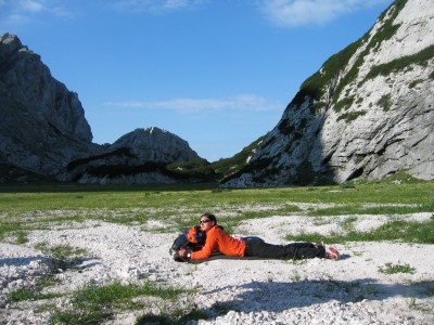 Lakota je nato seveda že močno pritiskala zato smo se pred odhodom do Korošice, do tja je bila še kakšna ura hoje, najprej dobro okrepčali (in s tem tudi rahlo zmanjšali težo naših nahrbtnikov). In da je bila mera polna, se je v tem času tudi vreme popolnoma zjasnilo, oblaki so izginili, napadli so nas sončni žarki in nas spremljali vso pot do koče.