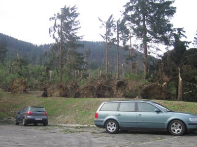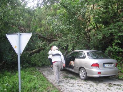 Na poti domov pa smo imeli pravo avanturo. Iz Kamniškega sedla smo odšli ko je zelo deževalo in v dolini je bilo pravo neurje. Odpravili smo se čaz Gornji grad kjer pa smo videli kaj lahko narava stori !!!!! Tukaj je nekaj slik…