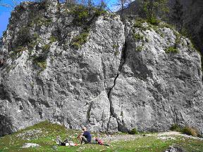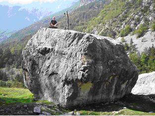–> severna stran, od 6a do 6c+ <– –> balvan s klopco na vrhu kjer je odličen kraj za meditacijo <–