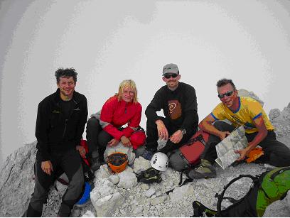 Na vrhu so že malicali planinci katerim se pridružimo saj so naši želodčki že pošteno lačni. Med malico zagledamo kako se čelada nekega planinca kotali po pobočju navzdol. Vsi jo opazujemo in govorimo, se bo ustavila, se ne bo ustavila? Na srečo se čelada ustavi. Naš junak Alen hiti po njo in jo vrne planincu. Na koncu nas starejša gospa povabi na Cviček v njihov kevder nekam na Dolenjsko. Sprejmemo povabilo in se začenjamo spuščati proti dolini.