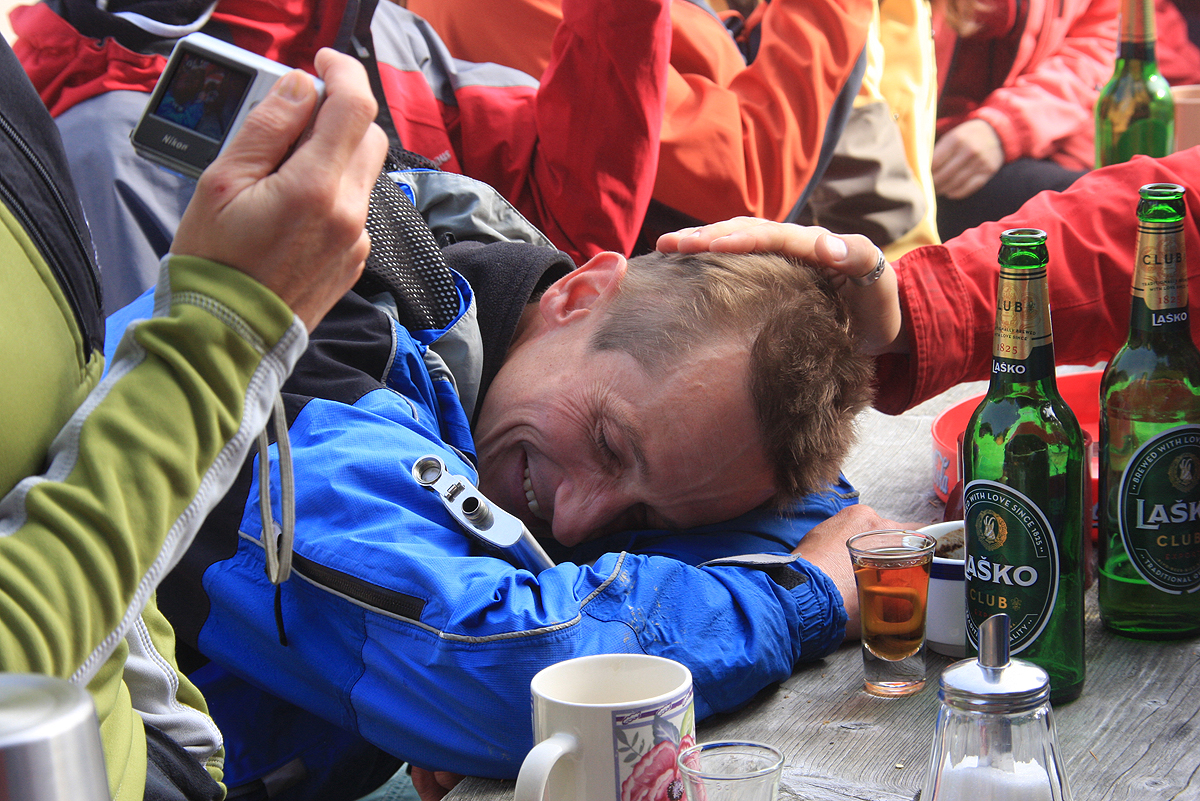 ter po krajši pavzi začeli sestopati v severni steni Velike Raduhe. Na Grohotu smo si privoščili še zasluženo malico in rogove, potem pa sestopili še preostanek poti.