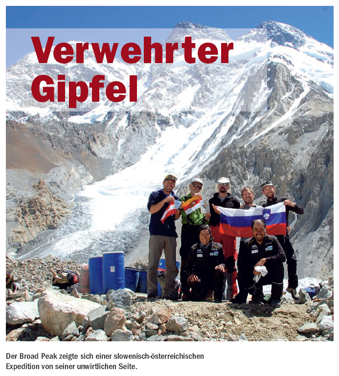 V zadnjem – decemberskem glasilu avstrijske Koroške gorske reševalne službe “BERGretter” je izšel zanimiv prispevek z izvornim naslovom “Verwehrter Gipfel – Der Broad Peak zeigte sich einer slowenisch-österreichischen Expedition von seiner unwirtlichen Seite”