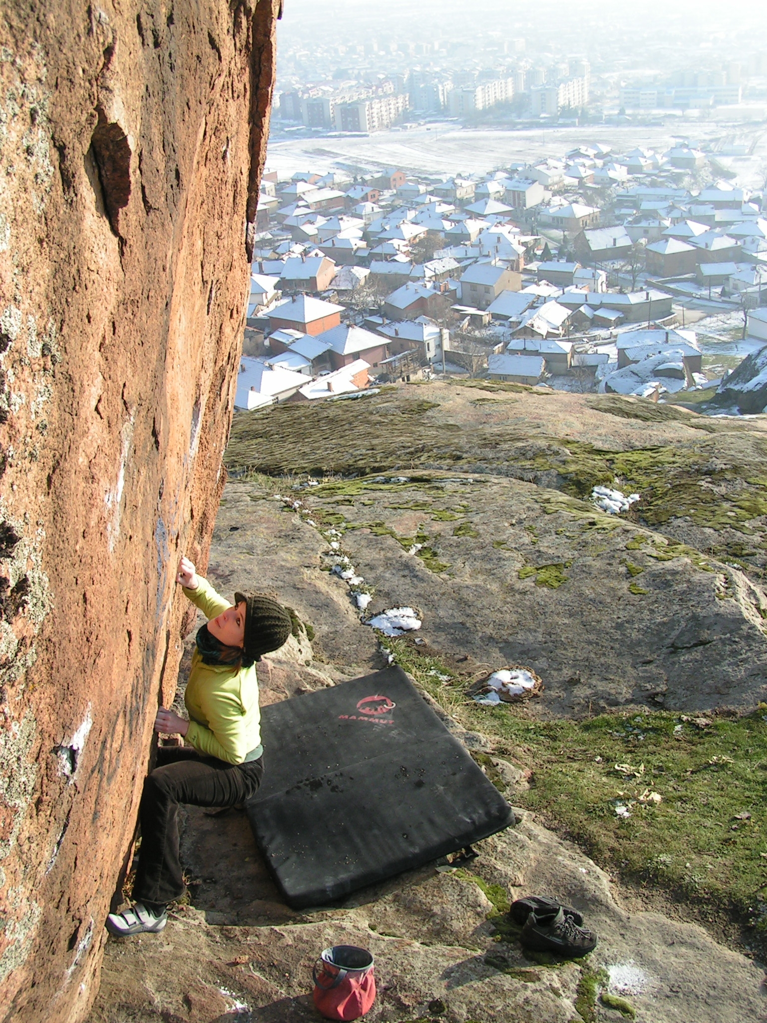 Glede vremena bi se dalo marsikaj pripomnit, sneg je res zadnje, kar si na balvanih želimo. Pa vendar, smo pionirji, šli smo v izvidnico in smo presenečeni. Pozitivno. Da je presenečenje še večje, smo povabljeni na sprejem pri županu, pojavimo se na televiziji, v časopisu, na internetu… skratka, cela atrakcija. Že res, da zaradi vremena zlezemo manj, kot smo na tihem pričakovali, zato pa pojemo in popijemo toliko več pleskavic in piva, občutimo in doživimo neverjetno prijaznost ljudi, se prepustimo tamkajšnjemu novoletnemu vzdušju, navežemo stike in razložimo ljudem tam doli, da imajo nekaj, kar si plezalci lahko samo želimo, in da lahko iz tega naredijo pravo plezalno meko. Skratka, bilo je ludo i nezaboravno.