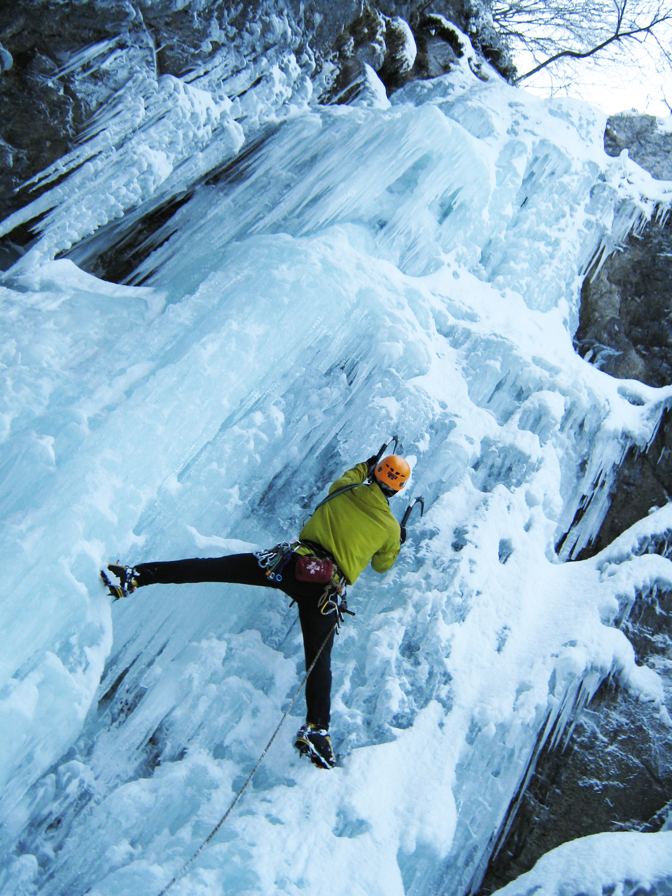 V petek nekaj malega čez 6. zjutraj sva se s Percem odpeljala do Logarske z namenom preplezat dva slapova v doglednem času. Da bova ob 16h nazaj v Ljubljani. Rezultat? Misija uspela. V LJ sva bila točno ob 16h preplezala pa sva Gajstnega (WI5, 110m, 4h) in slap Kristal (WI3, 150m, 3h). Pri prvem je trajalo malo dlje, ker (kot veste) ima navpično svečo vmes (6m, 90°) in tam vmes je mene tako navilo, da sem moral počivat. Nekako sem se uspel prebiti čez in potem je vse ostalo šlo gladko.
