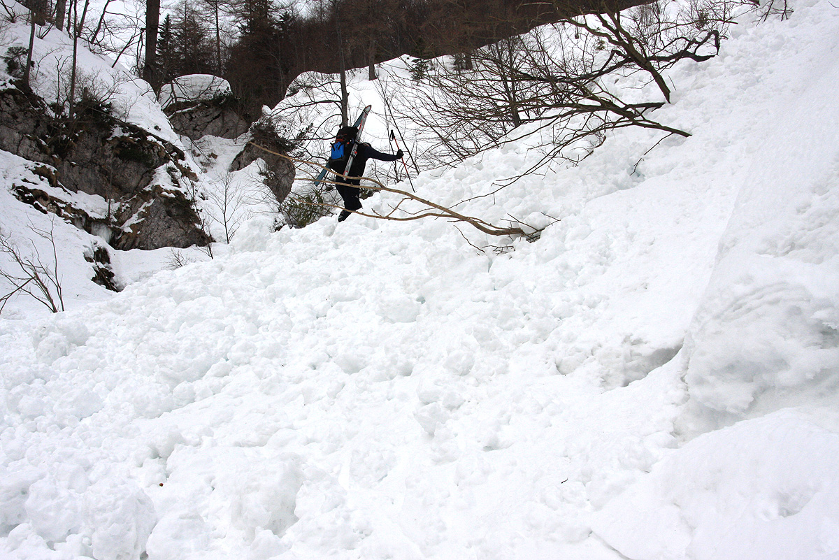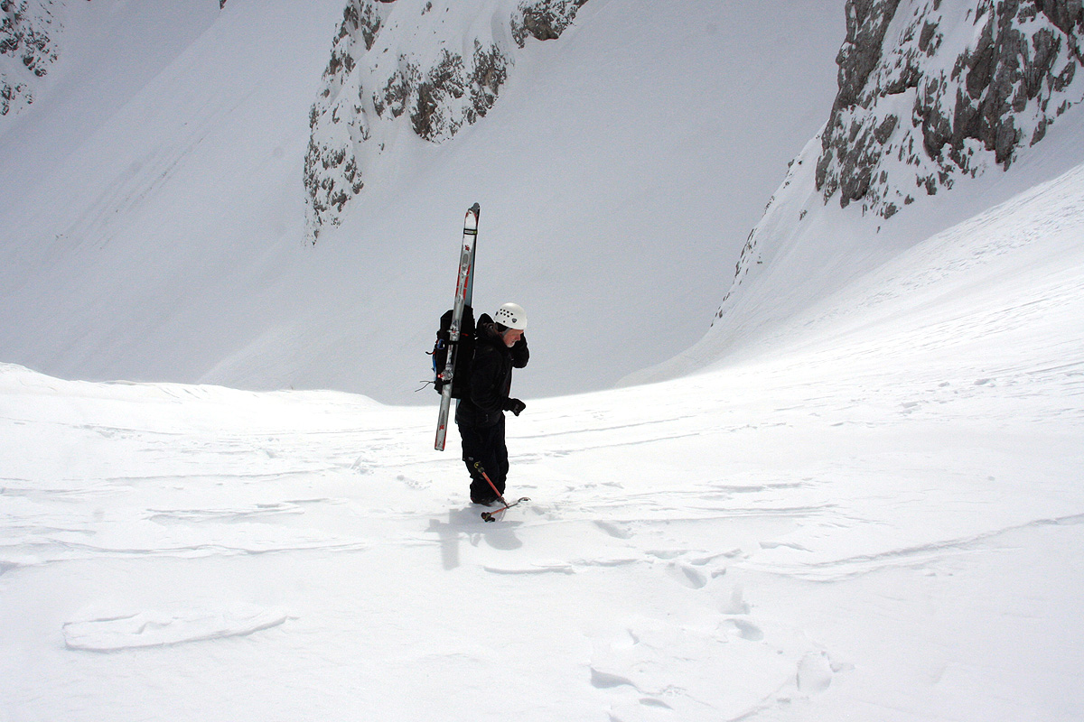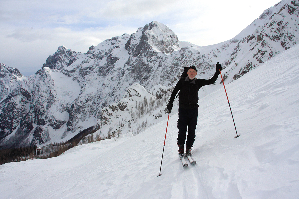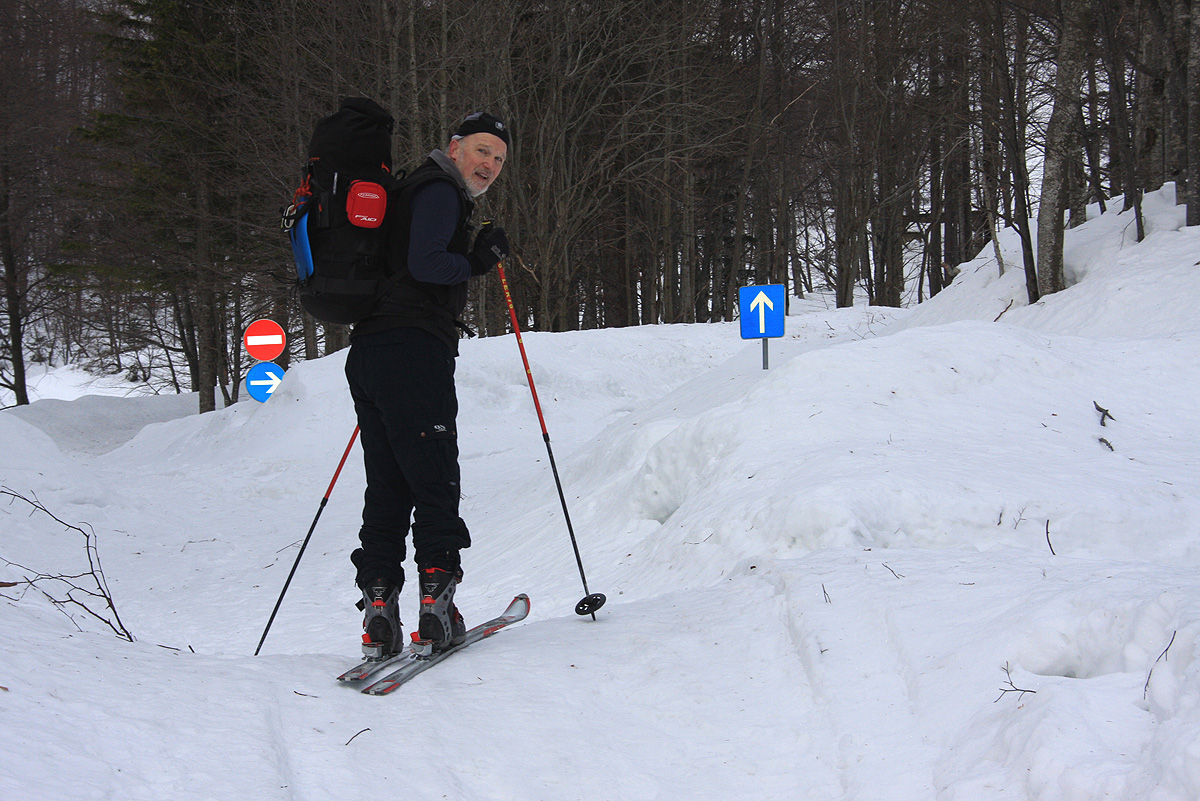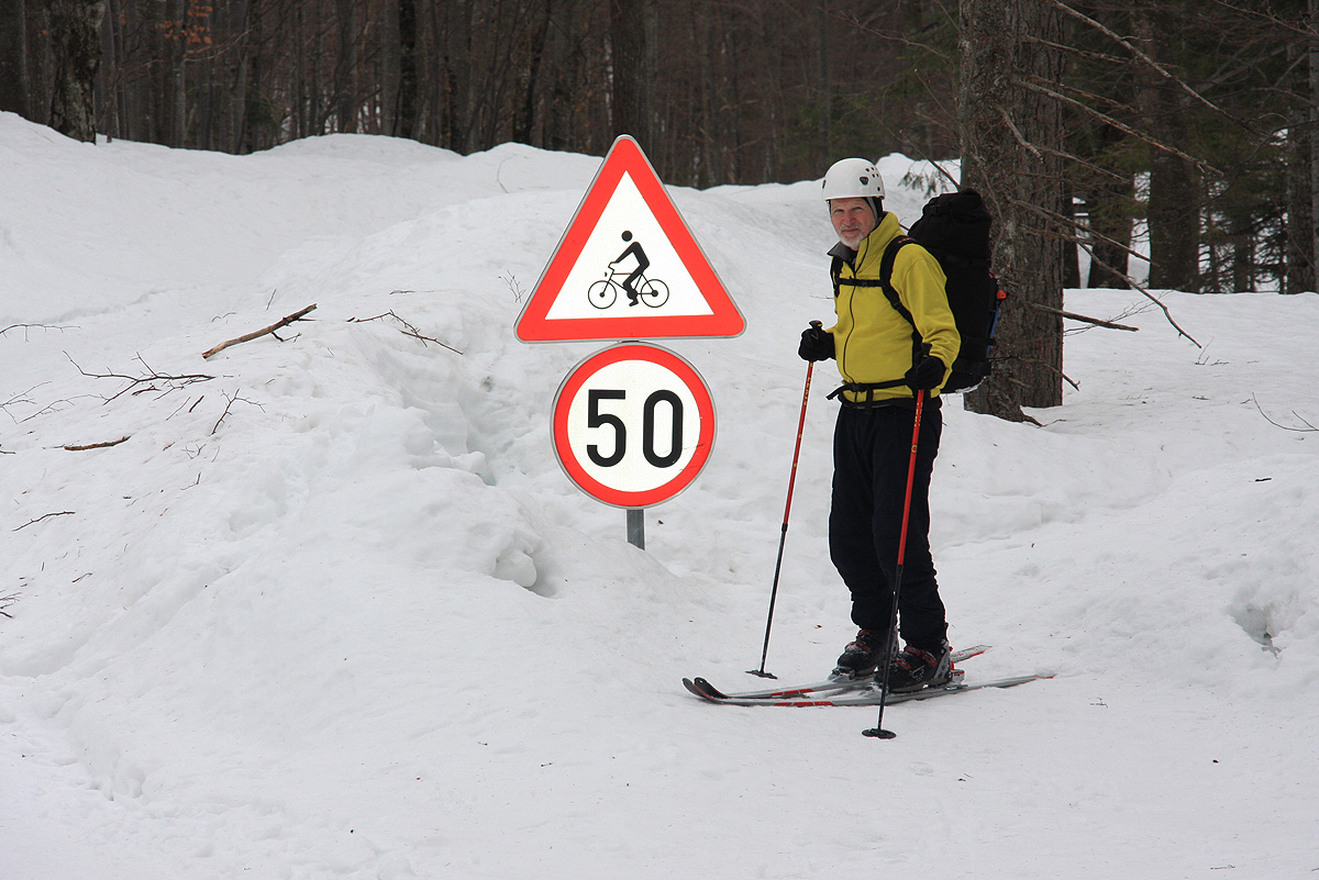 Smuka je bila nadvse zabavna, saj je bil sneg vsakih nekaj metrov povsem različen. Imela sva vse od pršiča, trdega snega pa do ledu. Najslabše so bile kamnite okrogle “mine” – zamrznjene krogle, skrite pod tanko plastjo pršiča. Kakor koli, do doline sva se pripeljala v enem kosu, sledila je le še uživaška, tudi dolga vožnja po cesti in deloma tekaški progi. Na tej skoraj 17 km dolgi turni smuki sva v vzponu nadelala okoli 1200 višinskih metrov in pokurila kar nekaj kalorij.