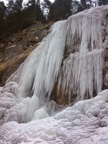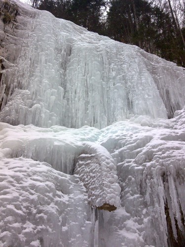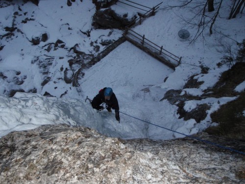 Na (zadovoljivo) lep pustni torek, smo sprva opazovali snežinke le iz stanovanja ali pisarne, malo kasneje pa to ponovili v malo lepšem okolišu in tudi s precej lepše razgledne točke, s Palenka. Prava zima, lepa, bela, primerno mrzla, še vedno. In slap Palenk nas je pričakal v ravno pravšnjem idiličnem stanju, ki je kar klical in vabil na “pustno rajanje”, na ples s cepini. Seveda pust ni pravzaprav imel nobene zveze z našim, par dni starim 20090225_slika010_1planom, da izkusimo še zadnje izdihljaje lahkih in bližnjih ledno plezalnih vzponov. Čisto naključje. Je bila pa super izkušnja za naju z Vanjo, ki sva ga z nepopisno očarljivim zadovoljstvom “obdelali” prvič.