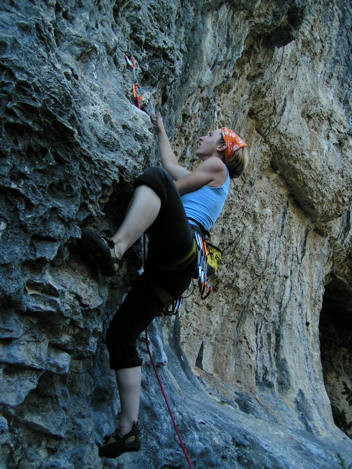 Pa, če začnem kar s Tamaro Omerzel (še vedno staro komaj 14 oz., ko tole objavim bo že 15 🙂 … Vse najboljše, Tamara! ), ki je septembra preplezala svoj prvi 7c (Joganando v Kotečniku), kar pa je tudi najtežji ženski vzpon na ŠAO-ju. Tamari je uspelo še v smereh: Jamski človek 7b+, Runo 7b+ (v 1.poskusu), Narobe svet 7b in dosti smereh na pogled do ocene 7a+ . Tjaša Zupančič je premaknila kar 2 svoja mejnika in sicer je v Španiji, kamor se je vrnila s Primožem in Majo (namreč prej je bila na poti že več kot mesec dni z mano), priplezala svojo prvo 7b+ z rdečo piko, na pogled pa ji je uspelo v smeri Coco Loco 7a+/b. V Španiji je preplezal 2x 7b+ tudi Primož Zupančič, Maja Pirtovšek pa je priplezala svoj prvi 6c na pogled. Ne dolgo nazaj sem bil v Kotečniku tudi z Alenom Marinovičem, ki je pisal narek z odlično oceno (kakšen narek ve Alen 🙂 ) in preplezal na »flash« Srebrno streho 7b. Sam sem bil na potovanju po Franciji in Španiji tudi kar uspešen, najprej mi je uspelo preplezati na pogled 2 smeri z oceno 8a, potem sem dodal še 8a+ in 8b z rdečo piko. In ker se po pripravah ne smemo ustavit, ga »žgemo« naprej, tako sem pred 14-imi dnevi preplezal svoj prvi 8b+ (članek Alpikor), danes pa mi je uspelo v Mišji peči še v Marjetici 8b/b+.