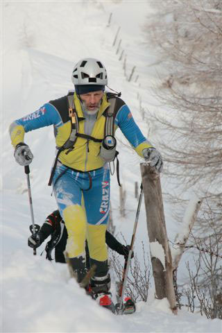 Sprva položno, nato strmo za cesto. Takoj, ko se po dolgem času mal zravna je koča, hitro okoli nje in kratek spust ter padec v cel sneg. Težko se je pobrati. Dober prijatelj gre naprej. Naj mu bo, ker mi je posodil majco za pod dres. Na drugem spustu je bilo dovolj plačila dolga in se odpeljem naprej še pred koga. Lepote okoli nas veliko snega gor zgoraj. Palca gre do podna in vesel si, če ročaj gleda ven.