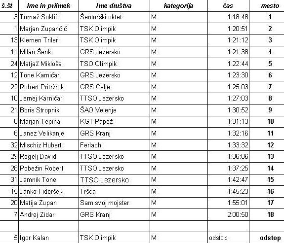 Na cilju sem 9.. Takoj za Jernejem Krničarjem. Včasih sva se dajala z njegovim fotrom Izidorjem, ki je še vedno nevaren tekmec. Enkrat je rekel Tilen: ti boš napadal ta starga Šenka, jaz pa ta mladga. NO še nikoli nisem prišel v cilj tako hitro za njim, kot danes. Temu pravijo naravnanost. Ja Tilnu ni bilo treba prit, ker je bil Anže na pomembnejši tekmi v tujini.