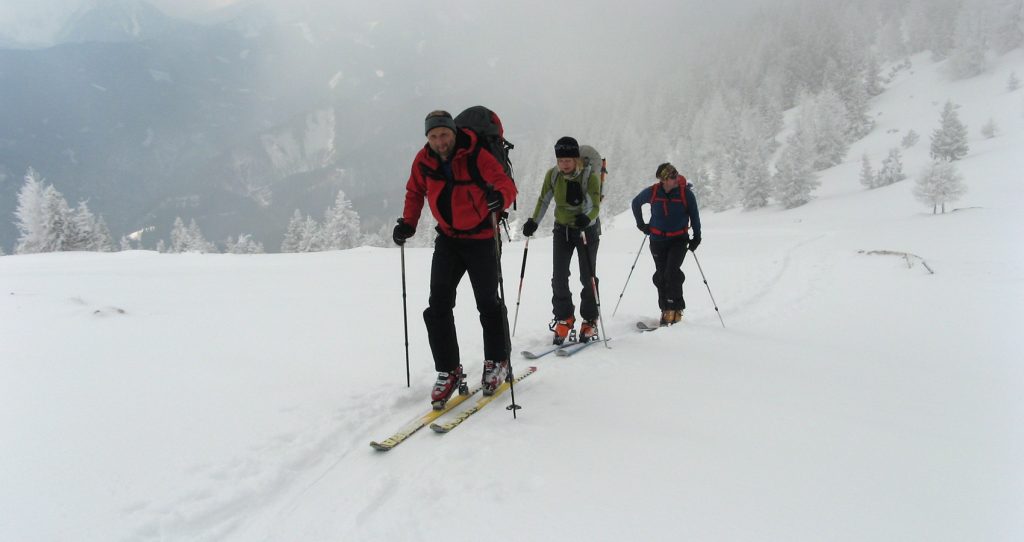 Glavni vrh je med turnimi smučarji zelo priljubljen, sledili smo že utrjeni sledi predhodnikov in se preko Obirske planine (1272 m) po planinskih poteh, gozdnih cestah in vlakah izognili Kapelski koči (Eisenkappler hütte 1553 m) ter prispeli pod Kraguljše (1828 m), kjer smo se priključili letni poti s Kapelske koče. Po krajšem počitku in malici smo se podali naprej navzgor v meglo, ki je večino dopoldneva kraljevala nad celotnim Obirjem.