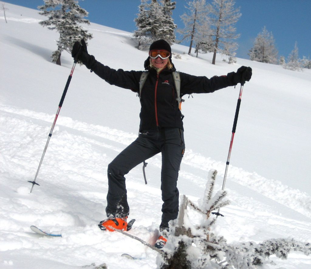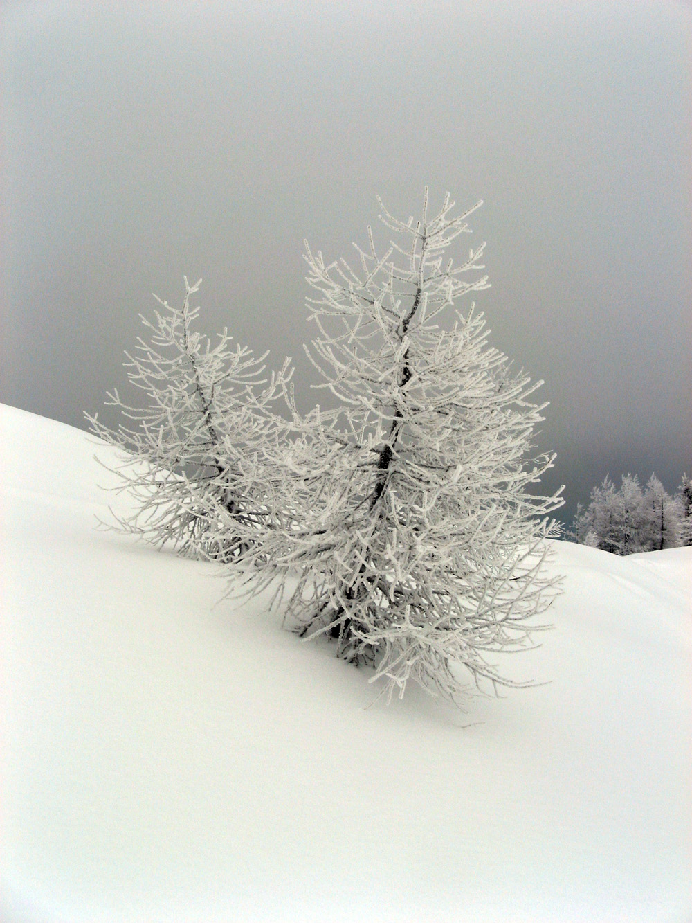 Spustili smo se v smeri vzpona. Med spustom se je megla razkadila, v spodnjem delu nad gozdno mejo smo že vriskali med risanjem zavojev po deviški belini, s tanjšo plastjo novega snega, ki je omogočal, da je vsakdo po želji uravnaval hitrost spusta. V gozdu smo se večinoma držali ceste, nekaj ovinkov smo skrajšali tudi s slalomom med drevesnimi debli.