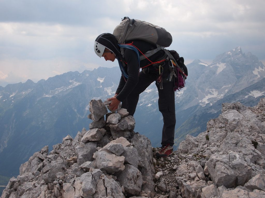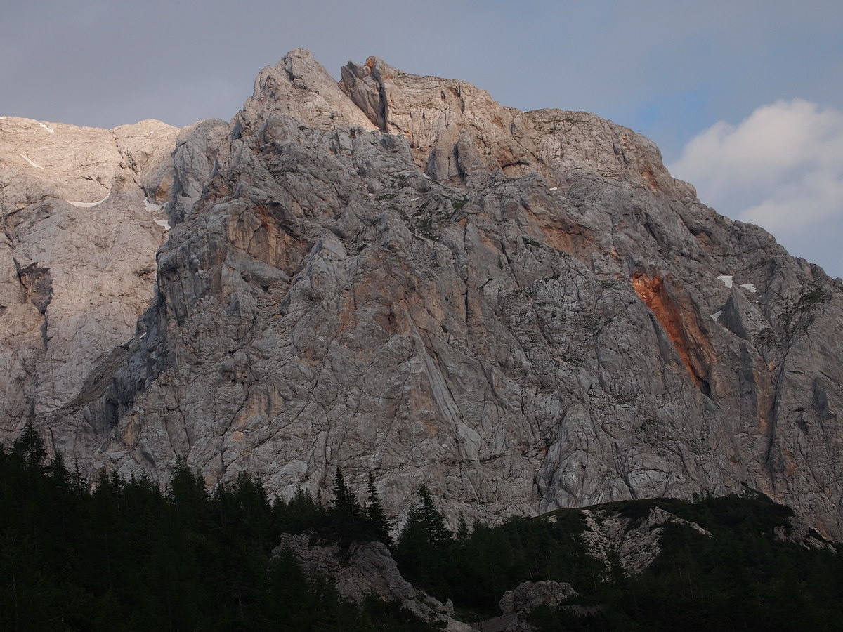 Po kakšnih šestih urah sva končno našla možica, potem pa tudi planinsko pot za sestop na Vršič. Po pregledu literature pa sva ugotovila, da sva plezala približno v območju smeri Deržaj-Šlibar, za naslednjič bom pa dvakrat preveril, da je opis smeri v nahrbtniku… Pa hvala Tanji za potrpljenje:)