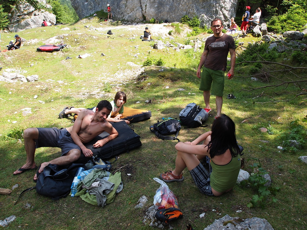 Poležavanje v senci na crash padih je bilo za utrujene alpiniste nekaj novega, s hladnim pivom je to gotovo en od boljših delov balvaniranja. Skratka še en super vikend.