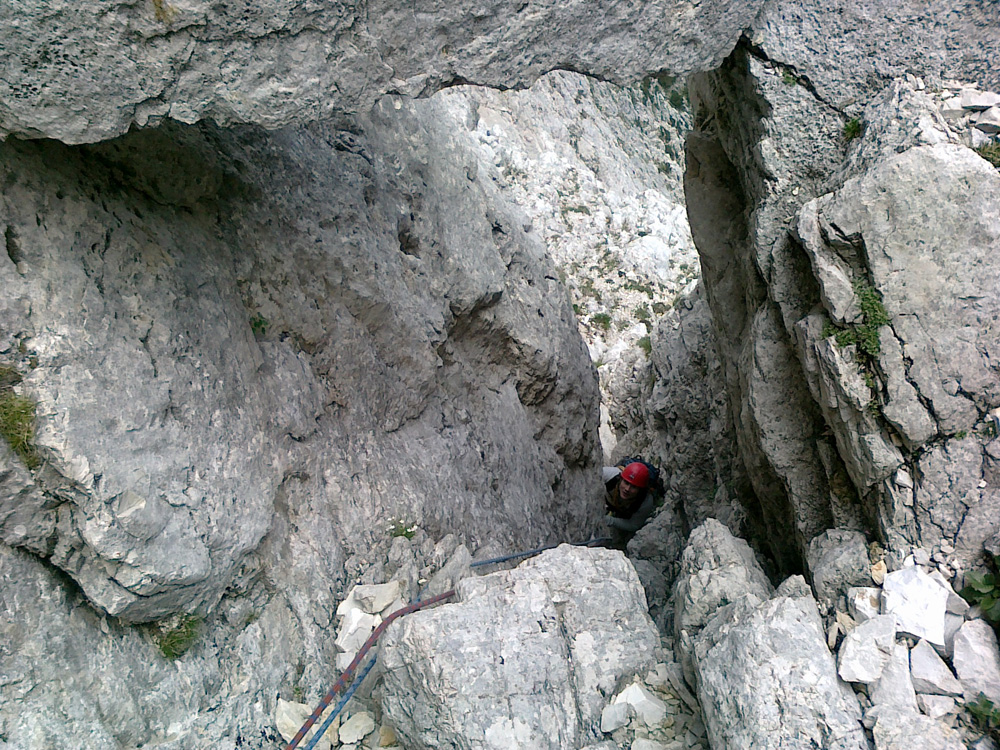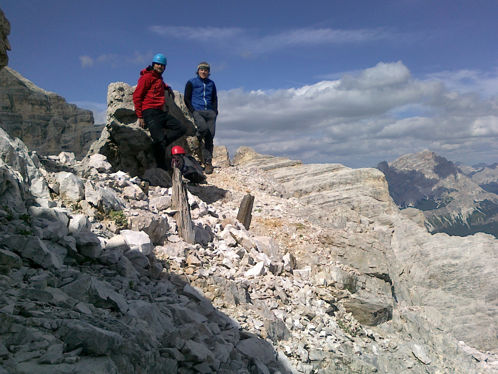 Da Dolomiti nebi ostali brez ŠAO predstavnikov, sva za zamenjavo Jureta in Tanje poskrbela še Martin in jaz. Iz kampa Olympia v Cortini, (tu Poljaki navdušeno odkrivajo čare nočnega plezanja v horizontali po vseh štirih) sva potem »napadala« okoliške stene. Tako sva plezala in preplezala Torre Lusy (Nordwand III/IV 122m), Punta Fiames (Dimai IV 425m), Fanisgruppe (Hexenstein IV 203m, En coulisse IV/V 340m, Dibona IV/V 350m, Ghedina – Direkte V 260m), Tofanagruppe (Dritte Kante IV/V 735m). Skala kljub navidezni »podrtosti« drži in je, kot piše v vodničku »ausgezeichnet«. Ker pa dopust hudičevo hitro mine je bilo potrebno v nedeljo še hudičevo hitro nad Hudičev steber v severno steno Prisojnika (IV/-V 550m).