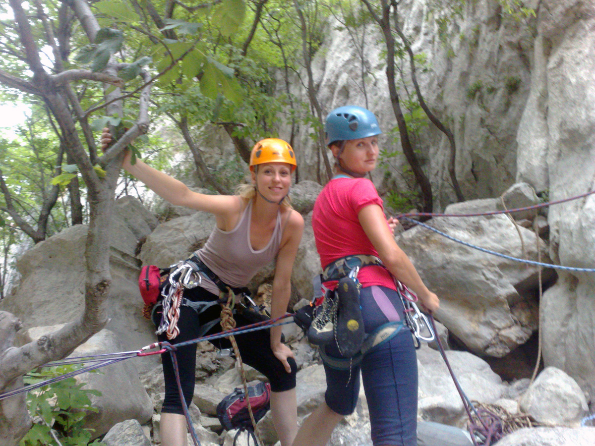 Ko sem v četrtek popolne prispela na ustje kanjona, odetega v žgoče sonce in cvrčanje škržatov, sem našla šotor dragih mi deklet, Tanje, Polone in Mihelce, sparkiran meter stran od ograje glavne ceste, pri Vesni. Nadobudnice so prispele prejšnji večer in sigurno niso dobro spale, si mislim, zato skočim navzgor po cesti