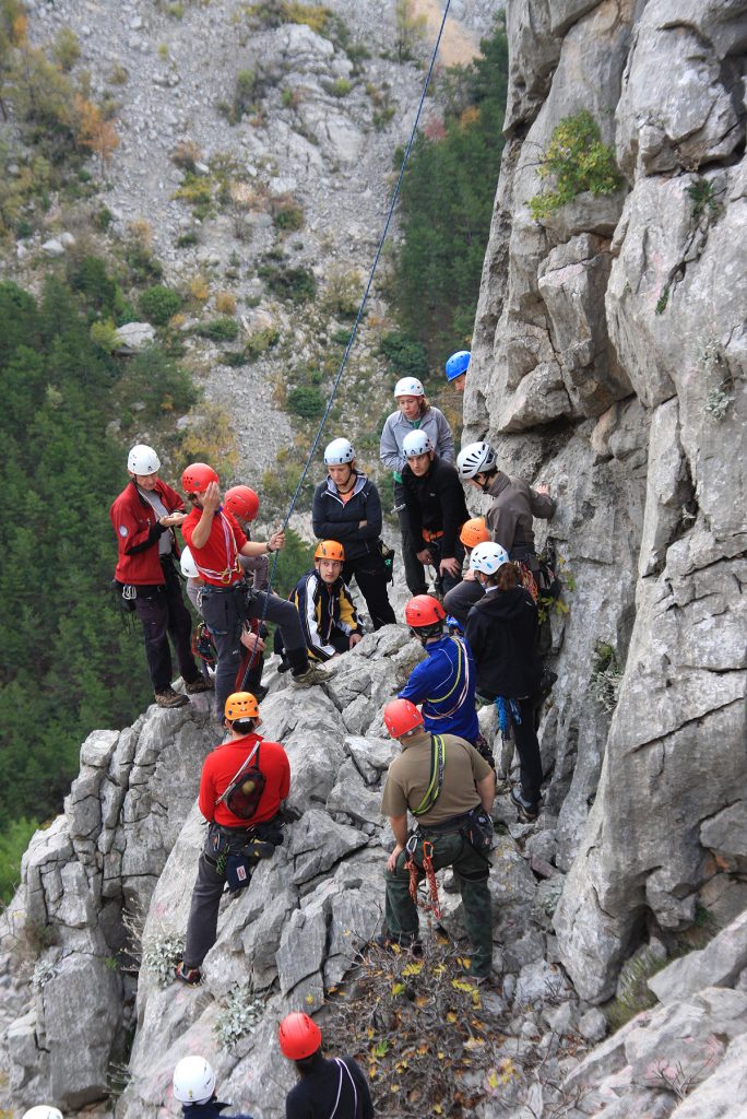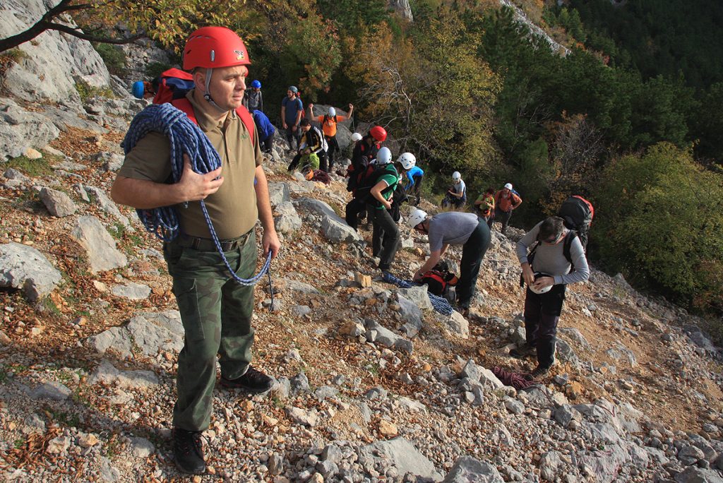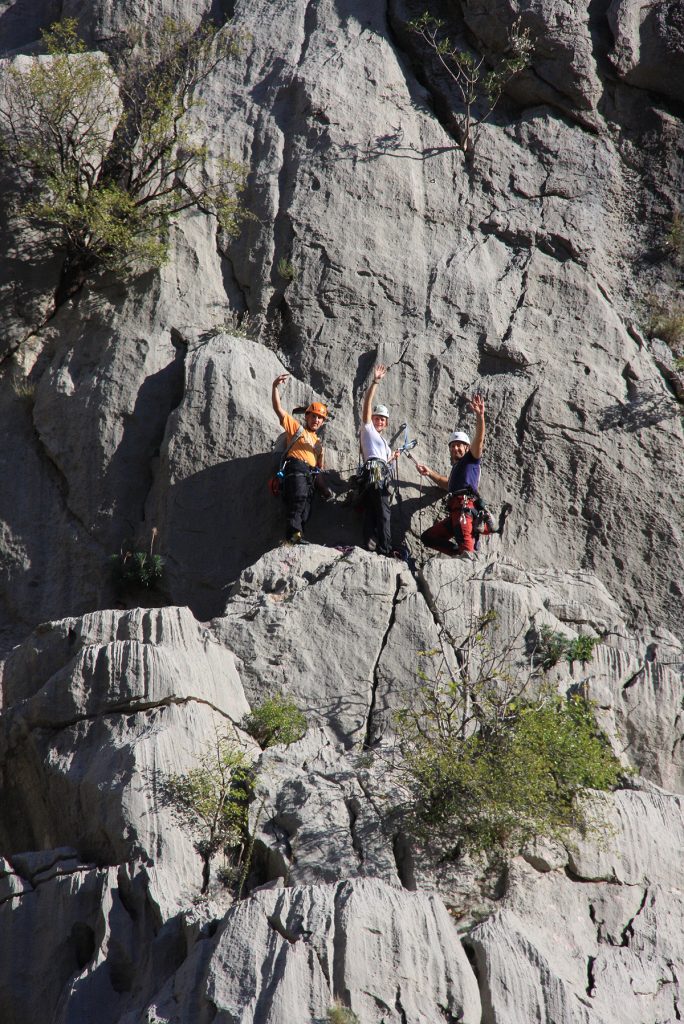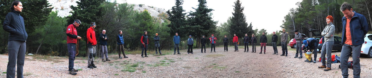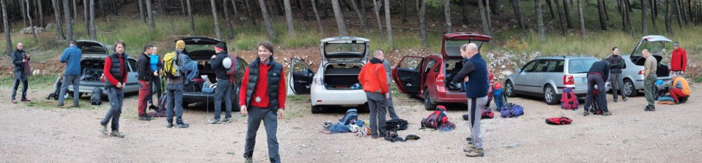 Po skupnem snidenju na parkirišču v NP Paklenica, kratkih navodilih, pripravljanju opreme in z želju po uspešno opravljenih vzponih smo se v navezah podali na plezanje. Slišalo se je le še SREČNO.