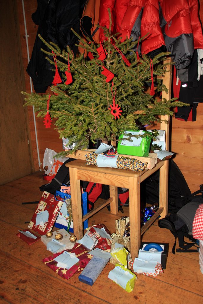 Multifunkcionalni kot smo, smo zraven lupili in sekljali cebulo, strgali korenje in odpirali konzerve in še kaj za gurmansko vecerjo. Dr. Maček je poskrbel za nebolečo amputacijo smrečice, ki nam je pričarala predpraznični čas.