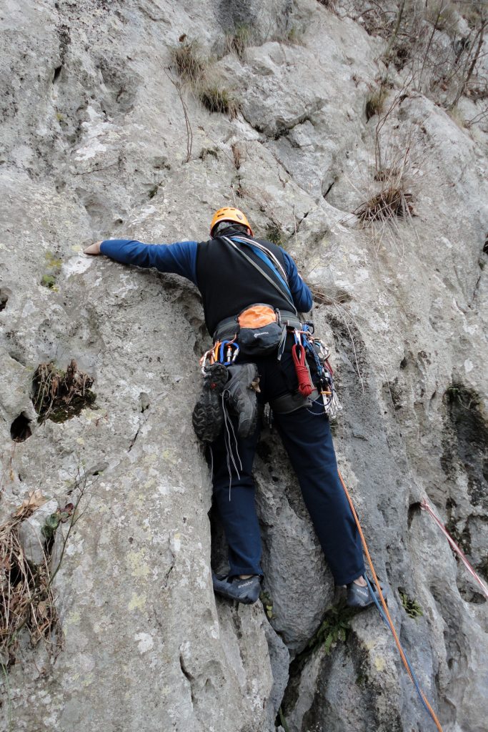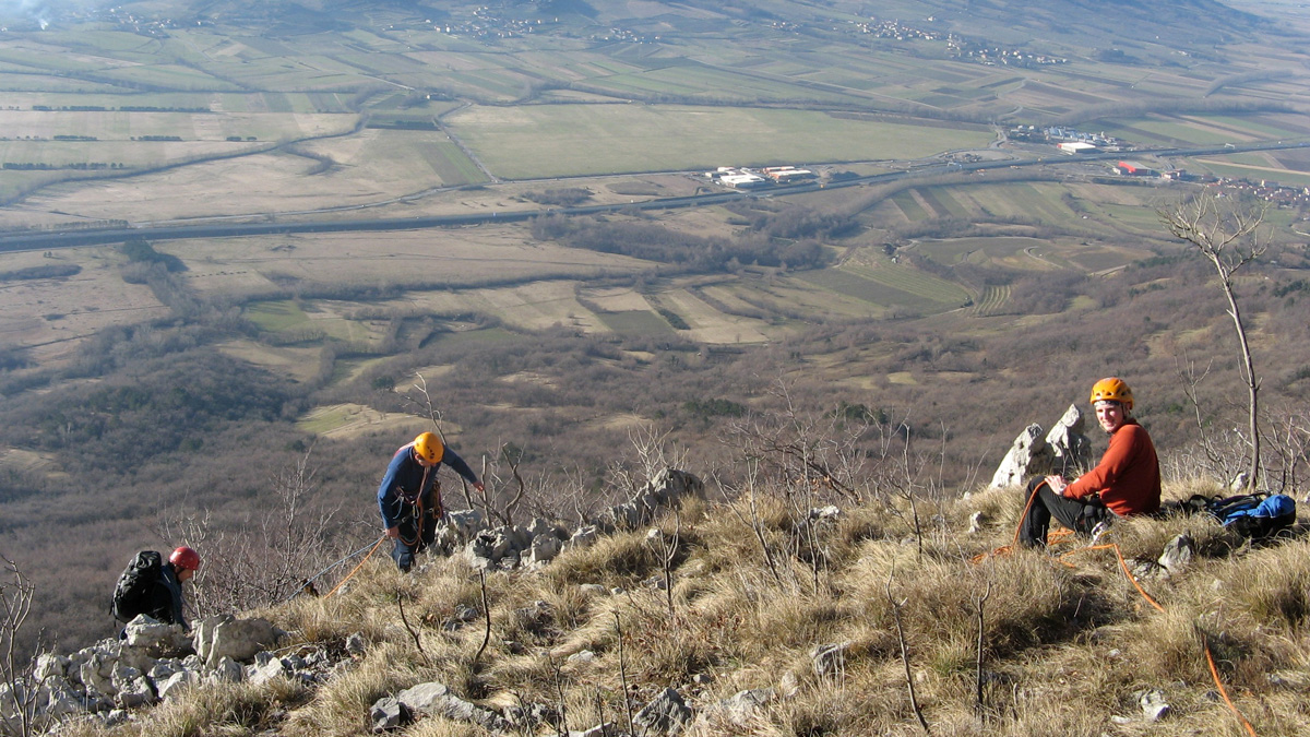 Po Vipavski dolini se podijo megle, s temperaturami blizu ledišča, tu zgoraj na 442 metrih pa sije sonce s polno močjo, temperature pa kot da smo že nekje sredi meseca maja. Na hitro naložimo opremo nase in se razporedimo po navezah; naveza Igor, Simon in Jože se odpravi v smer »Kačja koža«, midva z Davidom pa se odločiva za sosednjo »Smer čez Ploščo«, nato pa sva zgornji del do vrha Podraške Ture plezala po »Nikolajevi smeri«, saj se prva po 145 višinskih metrih konča.