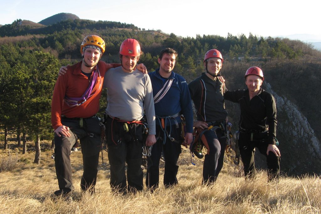 sapica. Razgledi so bili veličastni, smeri precej dolge, tako smo v poznem popoldnevu vzpon zaključili vrh 852 metrov visoke Podraške Ture, si privoščili prvi malo daljši postanek za malico in uživanje na toplem soncu. Sestopili smo po grapi in gozdu pod vrhom Podraške Ture oziroma ob sektorju, ki smo ga plezali, vmes opravili tudi spust po vrvi ter do mraka prispeli direktno do obeh avtomobilov. Analizo smo opravili v Vipavi ob dobri kapljici.