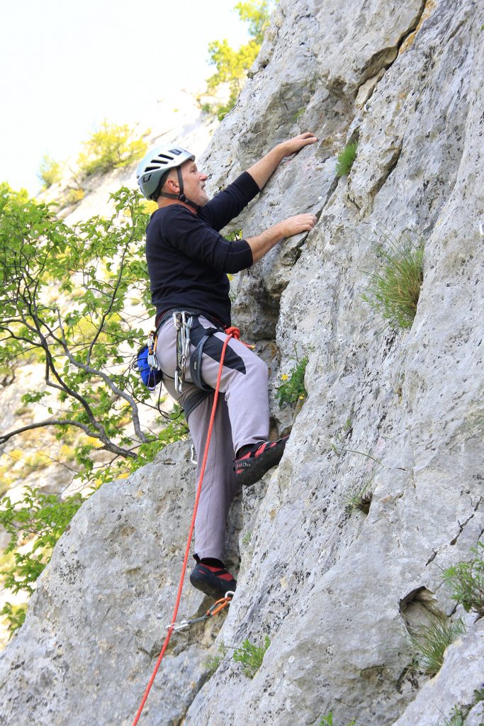 Kakor koli, imeli smo super sredo, lepo večraztežajno smer s kvalitetno skalo in zabavno plezanje v čisto lahkih športnih “štiricah”.
