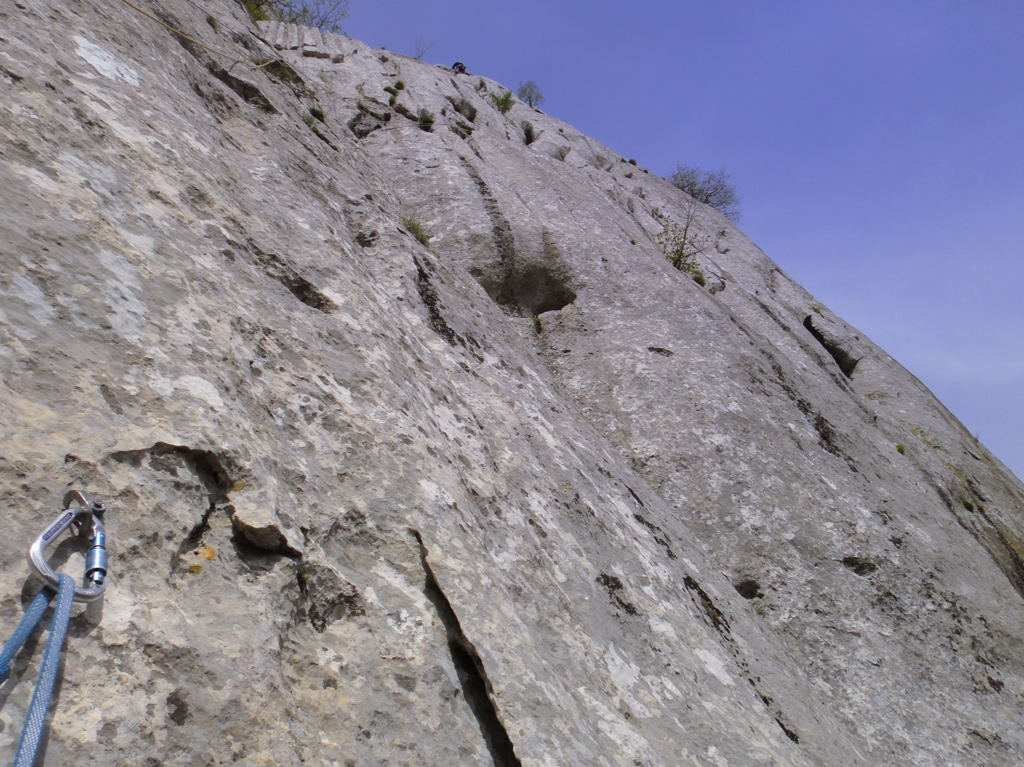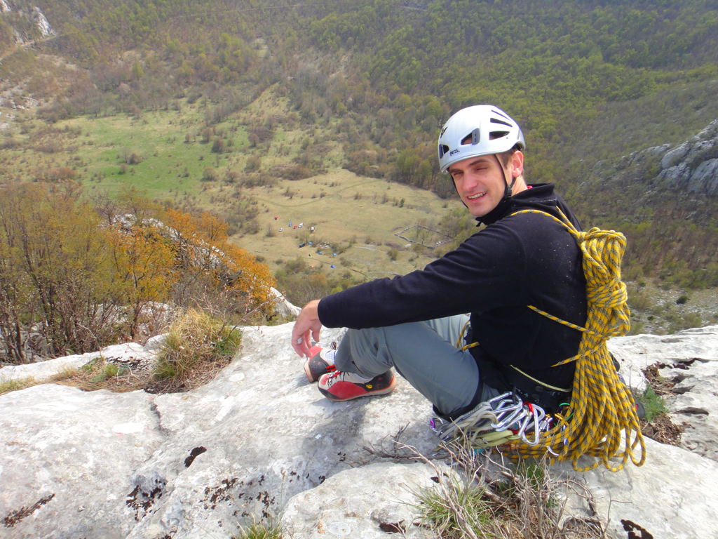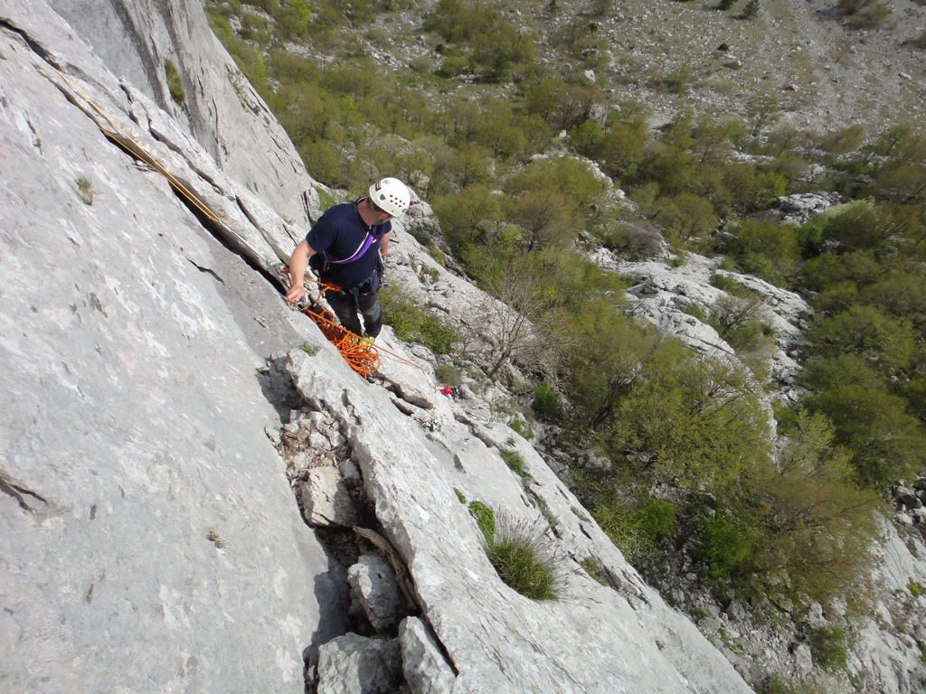 Dva dni sta kar prehitro minila, vendar sva se s Tanjo odločila, da se vseeno prestaviva še v Paklenico, in pogledava, če so dol kakšni kolegi. Kaj kolegi, srečala sva pol ferajna (Mijotov članek še čakamo :), pa še kup znancev iz cele Slovenije. Ko sva v ponedeljek popoldne prišla v Paklenico je bila tam še strašna gneča, Avstrijci, Čehi, Madžari in Slovenci smo zasedli kanjon in vse mize pri Dinkotu, da sva komaj prišla do tako želenih ribic. V torek in sredo je nato gneča malo popustila pa tudi spremenljivo vreme z rahlimi plohami ni bilo ravno idealno, sva pa vseeno še uspela splezati tri lažje smeri, Ajgorja, desno varianto Tinine in Zgrešeno, potem pa je bilo treba domov in spet v službo.