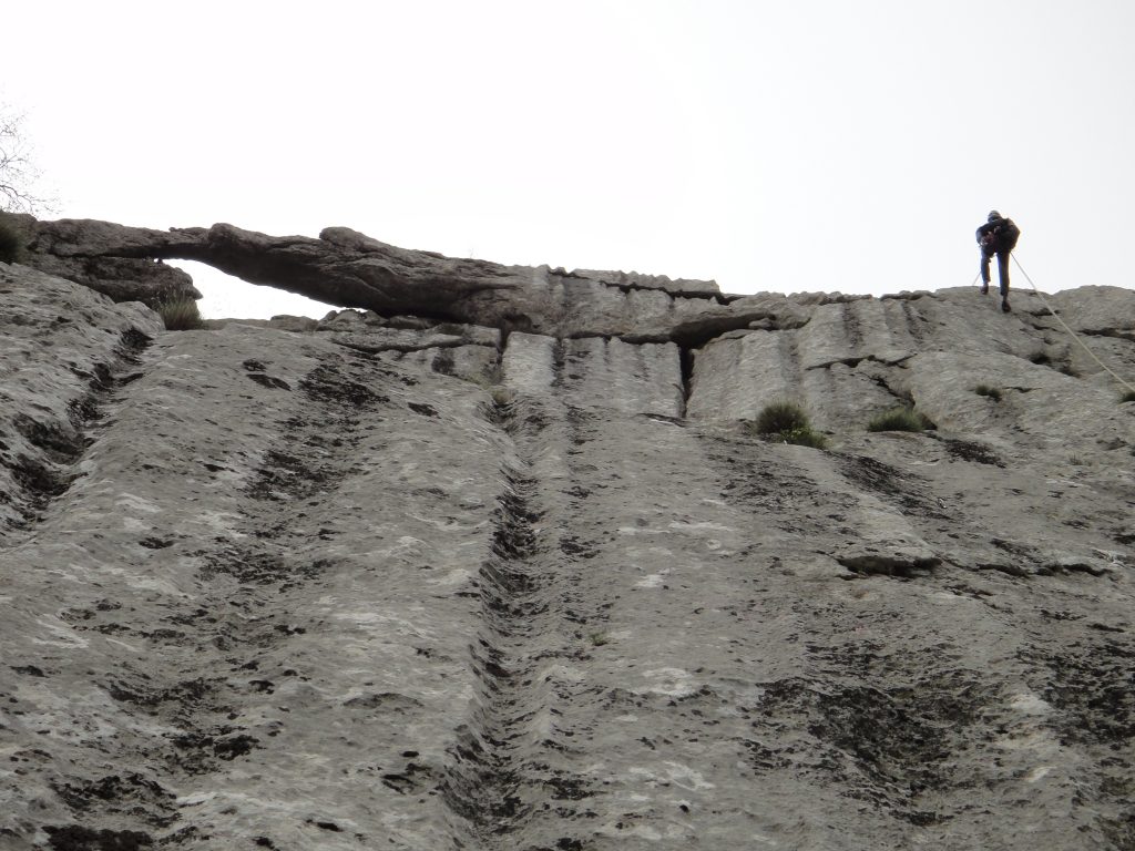 Na vrhu Rujičinega kuka in abzajl ob oknu skozi katerega poteka smer Attraverso l’arcobaleno