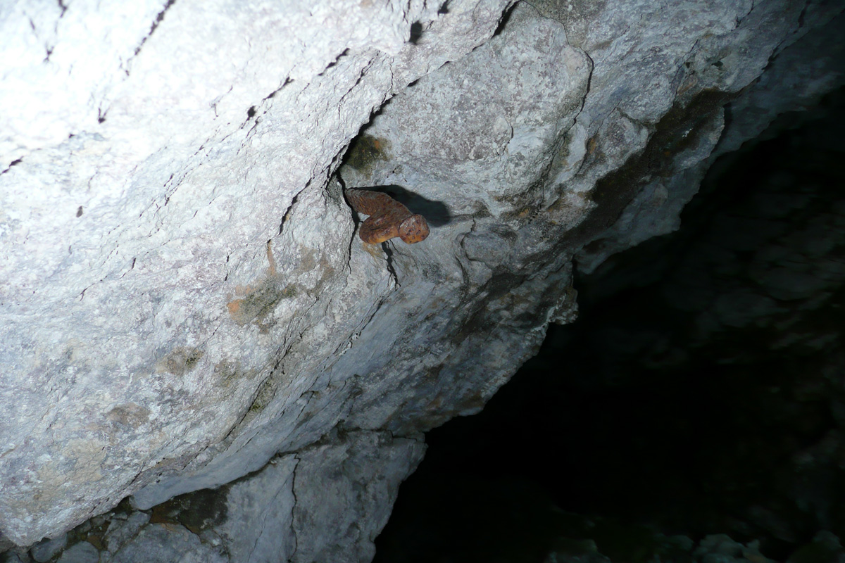 Po treh raztežajih – kako saj v vodniku piše samo dveh – smo v votlini, kjer se Plate postavijo pokonci… Korošci najbrž plezajo z “elastiko” ne s štrikom. Tu začne svoj ples Stane. Pravi, da so kot balet. Saj ne more biti drugače, ko pa ima svoje plezališče … Ja eni jahto, drugi avijon, Stane pa … In tako sem kot “UNPROFOR” na Kosovu. To pa zato, ker sem, ko sem nameščal opremo, pa komplete, pa prusike, pa “jebice”, pa “frendi”, pa “EMŠO”, in tako sem pozabil na kladivo. Zdaj naprej nabija Stane, izbija pa Mijo.