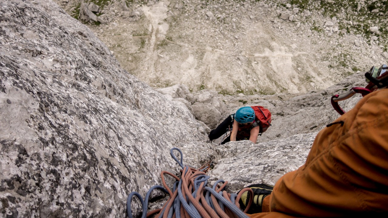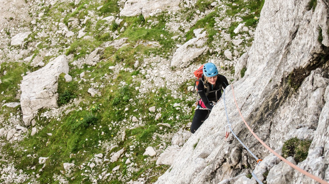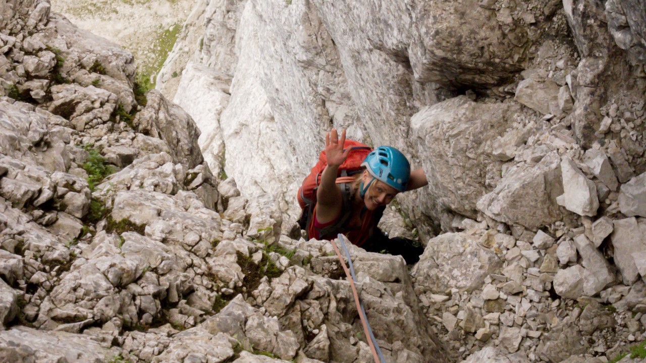 Smer po zajedi V+/IV-V 300m – Plezala Lidija Celcer in Gregor Ahtik