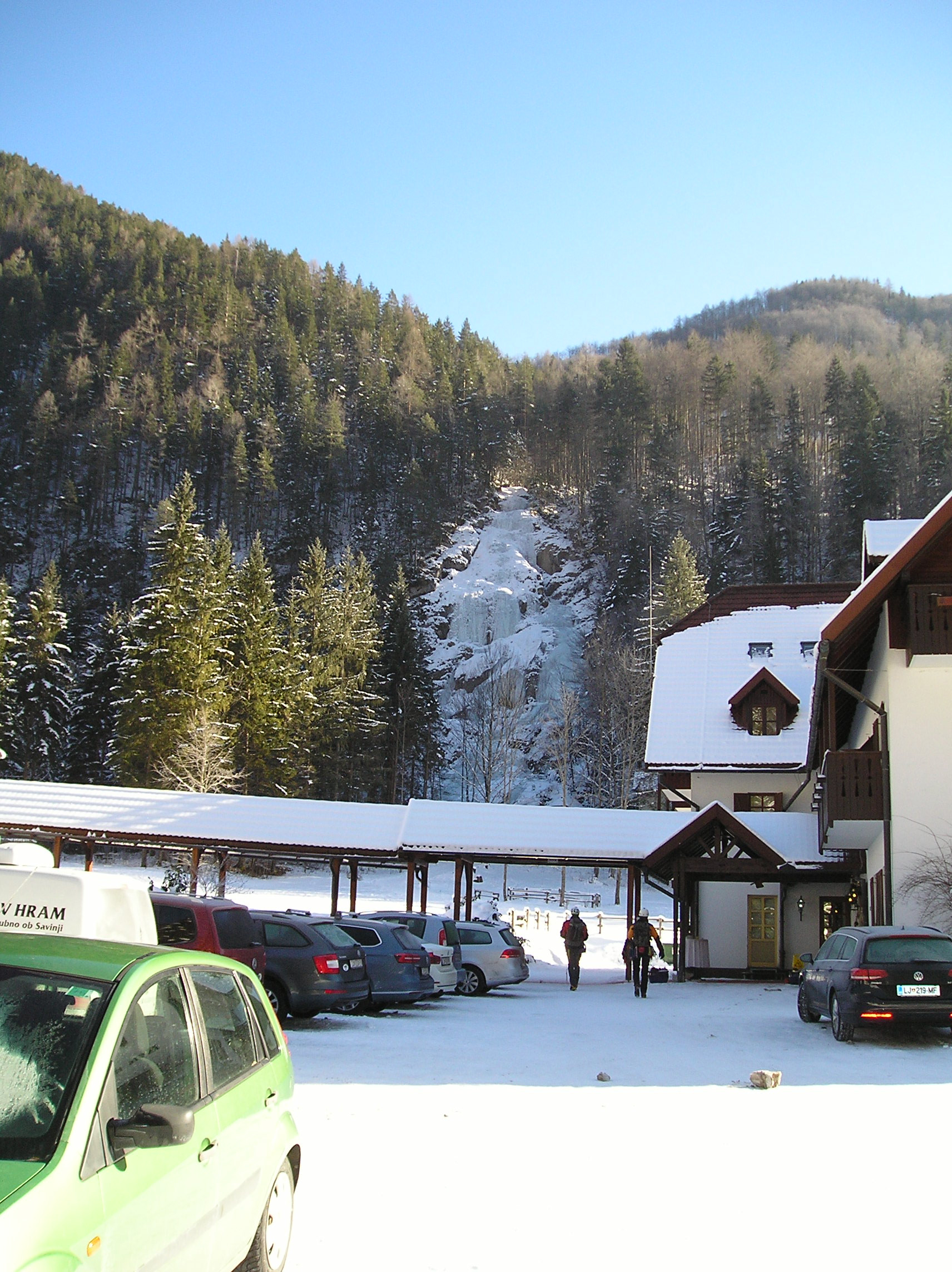 Četrtega januarja me je Mijo povabil v Logarsko dolino na plezanje v slapu Kaskada. Slap je krasen in se konča v Savinji. V slapu je že ena naveza. Mijo me na hitro pouči o lednih manevrih, plezanju v ledu in opremi in kmalu prične plezati.