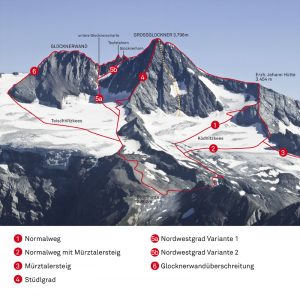 V petek pozno popoldan, smo se odpeljali malo naprej od vasi Kals am Grossglockner do koče Neues Lucknerhaus na 1918m (cca 4 ure iz Velenja). Tukaj smo parkirali, kratko zaspali in že je začel padati dež. Po glavi so se pletli dvomi. Ali bo vreme ali ne? Julijan nas je zbudil ob 2 zjutraj in ob 3:00 smo štartali. Kmalu je začel padati dež. Sem si rekel; do prve koče bo že potem pa bomo videli. Ob 4:00 sva z Janom že vstopila v Studl-Hütte 2802m. Julijan in Bisti sta ravno odpravljala proti grebenu Studlgrad. Ker je vreme še naprej bilo muhasto, smo se Tanja, Jure Jan in jaz dogovorili, da je najboljša varianta po normalni poti. Počakali smo da je nehalo deževati in odrinili proti koči Erzherzog-Johann-Hutte 3454m. Čez 2 uri smo že malicali in čakali. Vreme se je izboljšalo in hitro smo se odpravili po ledeniku na mali Grossglockner, kjer smo srečali naša junaka iz smeri studlgrad. Razmere na ledeniku in grebenu so bile odlične, tako da smo hitro napredovali in nekaj čez deseto uro veselo pozirali ob križu na vrhu. Grossglocner je naš! Sledil je sestop po isti poti v dolino. Sestop je trajal cca 4 h.