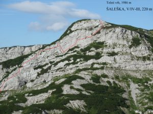 Šaleška, V/IV-III, 220m, 3h, prva plezala: Stane Barber in Polona Barber, 29.7.2017