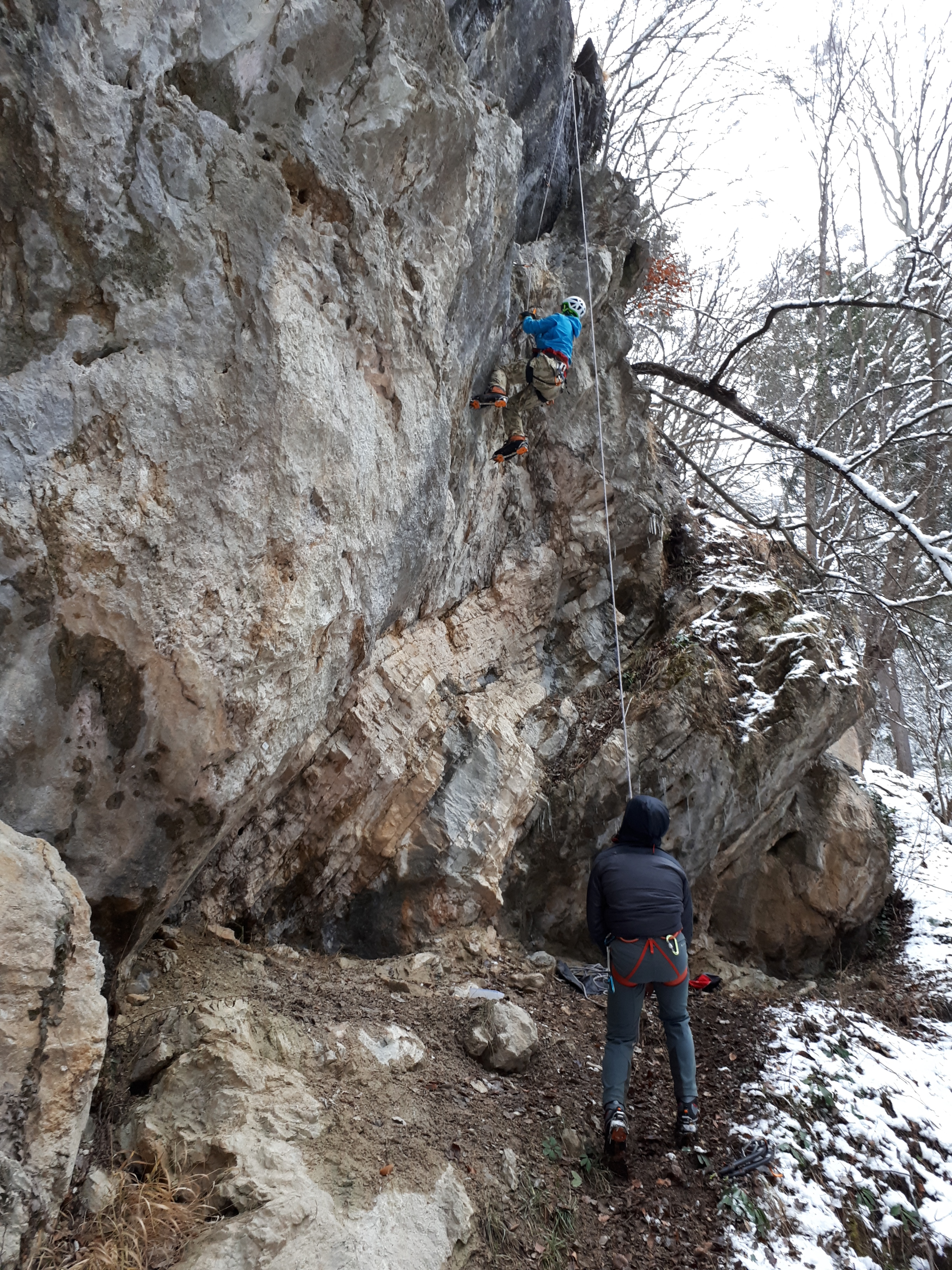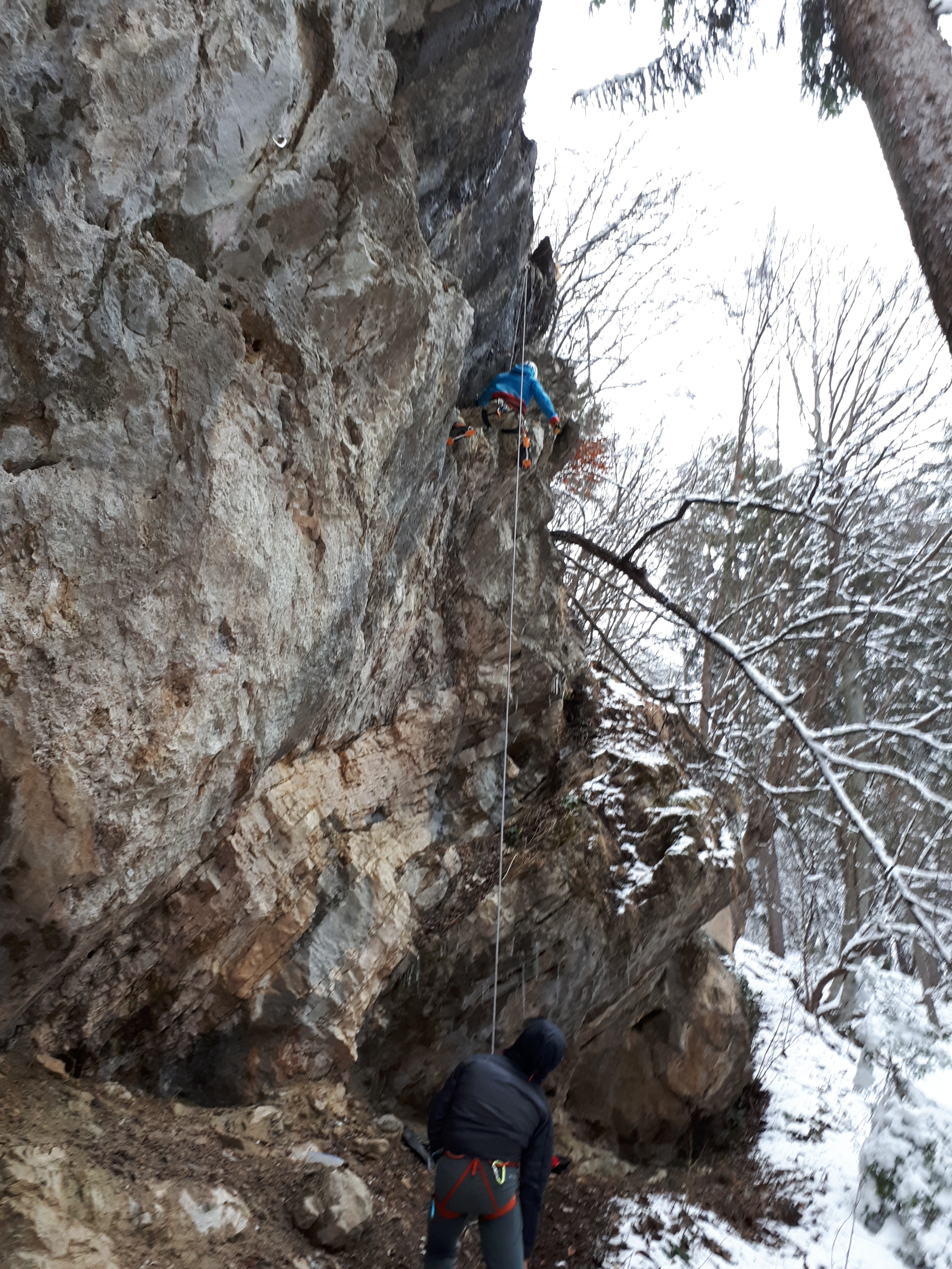 Moj prvi spoprijem s to panogo je prinesel nekaj lapsusov, med drugim mi je uspelo pozabiti pas. Dan je rešil Ervin Mlakar, ki je naredil ne najkrajši ovinek iz Trbovlj. Ker je bil na mestu zločina in ker je pravzaprav uredil plezališče, smo seveda navrgli še kakšno ali dve. Res lepa hvala, ne bo pozabljeno!