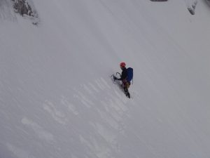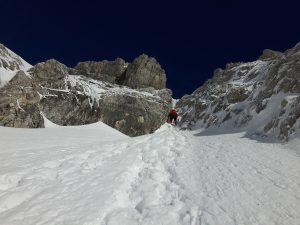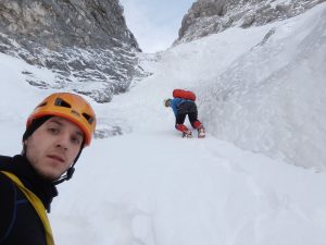 Ob vzpenjanju proti Okrešlju, opazujeva novo zapadli sneg, ki nama ne ponuja nekakšnega lagodja kot sva ga pričakovala. Že kmalu pred ŠAO kočo prideva do spoznanja, da se najin prvotni načrt ne bo uresničil zaradi snežne podlage. Tako zjutraj vstaneva in se napotiva proti Mrzli gori, v Centralno grapo. Pod vznožjem se nama še ni zdelo da je toliko novega snega zapadlo. Prispeva do skoka, ki je lepo zalit ter pomrznjen. Naprej nadaljujeva po zametih in se počasi prebijava skozi. Uspešno priplezava iz grape in se podava še na vrh gore. Spust opraviva po Zahodni smeri.