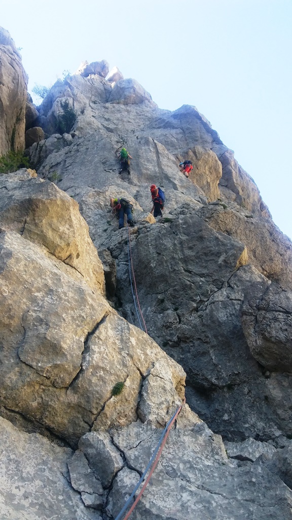 A ne v deželo hobitov, pač pa v še bolj pravljično Paklenico. Letošnji plezalni tabor (21. in 22.4.) se je kot običajno začel z zbiranjem v kampu Anića Kuk na petkov večer. Med druženjem smo se še isti večer razdelili v raznolike naveze tečajnikov, mlajših ter starejših pripravnikov in alpinistov. Vodniček je poletel od rok do rok medtem ko smo naredili plane za naslednji dan.