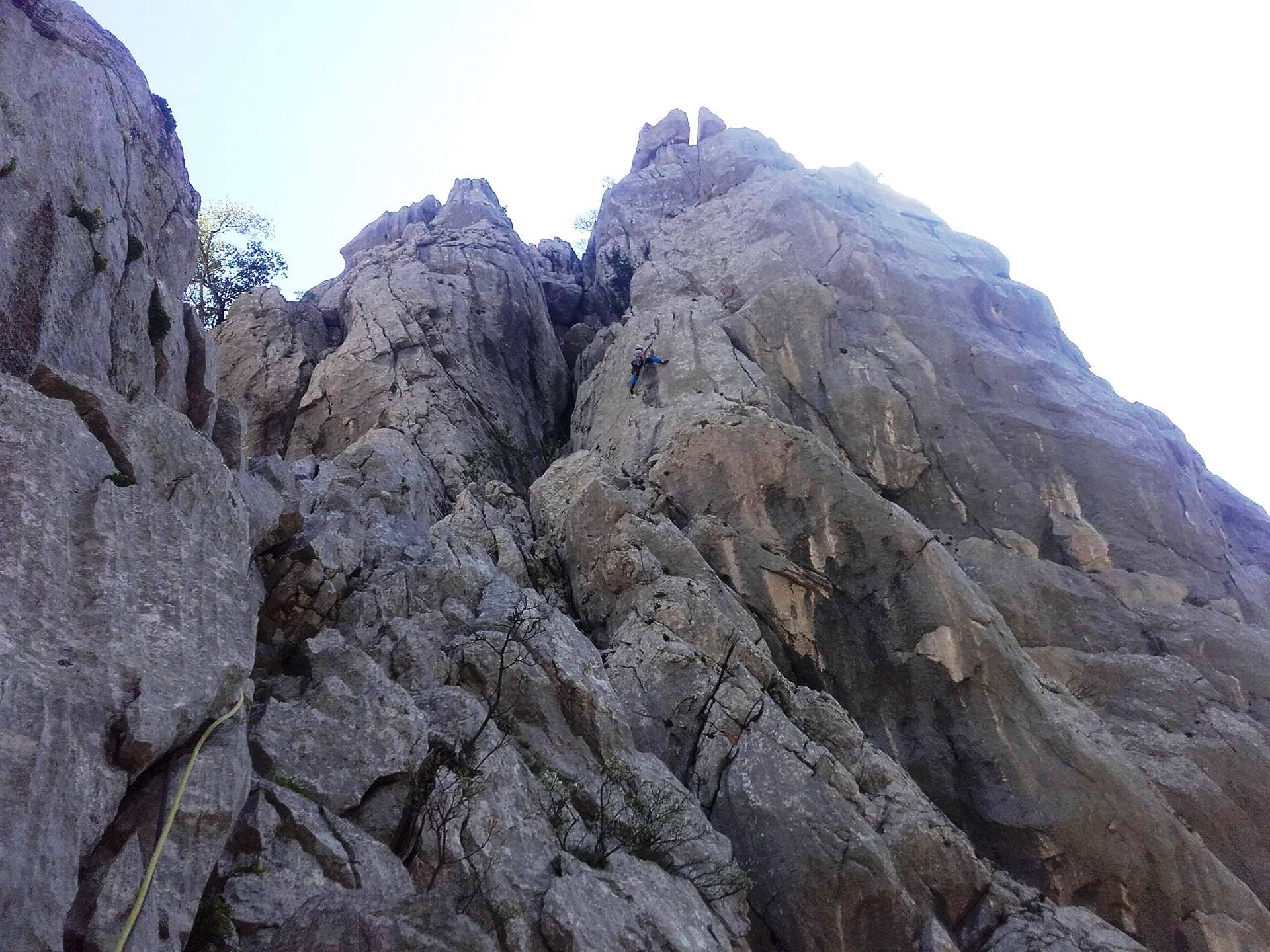 Ker smo tudi ta »frišni« lani že imeli svojo prvo izkušnjo s Paklenico, smo se v soboto vsi podali kar naravnost nad uresničevanje omenjenih planov. Po začetnem prebujanju prstov so stvari dobro stekle, štanti so držali, manevri tudi. Vse naveze so preplezale vsaj po dve smeri, nekatere tudi tri. Dan je bil poseben predvsem za tiste, ki smo prvič v dolgih smereh samostojno plezali v vodstvu. Po zasluženo nagrado smo se zvečer zatekli k Dinkotu in ob ribah pomešali naveze za naslednji dan.