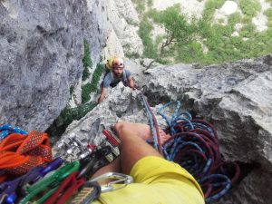 Ko si enkrat v steni, te raznorazne provokacije in motnje ne smejo spraviti iz tira. Zato, ko se ti hrvaški tečajnik v iskanju nesrečnega Ivana abzajla malodane na glavo, ne spustiš, ampak nadaljuješ. Ne smeš se pustiti zmesti, ko ti nek Italijan nekaj razlaga, pa je vse skupaj slišati nekako tako, kot bi poslušal galebe, potem pa ugotoviš, da so ti med spustom po vrvi uspeli zatakniti štrik v lusko, tako da ga moraš reševat (štrik, ne Italijanov, oni so jo že popihali v dolino). Mimo glave ti lahko prifrči plezalka, pa se ustrašiš, seveda se, ampak potem hvaležno ugotoviš, da je samo čevelj in ne cel podor, kot se je to skoraj pripetilo tvojima kolegicama le kakšen dan ali dva nazaj…