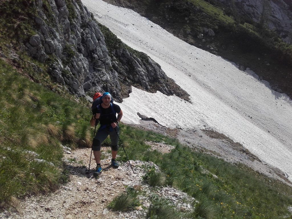 Pripeljeva se v Bistrico in zagledava steno Kogla, ki je bila že cela obsijana, tako sva veselo naložila robo in gasa proti steni. Do pod nje je bila priprava usmerjena v Zupanovo, ko pa zagledava zajedo, je bilo govora samo še o njej. Že v drugem raztežaju (zajedi) nama je dalo vedeti, da se bo plezalo. Zajeda je kompaktna, ampak vmes postajajo oprimki in stopi vedno manjši, dobra priprava za naslednje raztežaje. Po štirici se pričneta najtežja raztežaja. Ker sta bila oba preplezana na tehniko je klinov več kot dovolj. Prvega nama je v drugem poskusu uspelo preplezati prosto, za drugega pa sva sprejela (A0) in nadaljevala proti propelerju. Prvi poteka čez strehi in preide v plato s slabimi grifi. Drugi pa po prečki v zajedo. V propelerju še vseh težav ni konec, končajo pa se šele po štirici, ki so jo stari mojstri preplezali na (A0). Tako vsa videla ,da na skici ni pomote. Sledi bolj sproščeno plezanje, ko preideš v Virensa pa te čaka poplezavanje do roba stene.