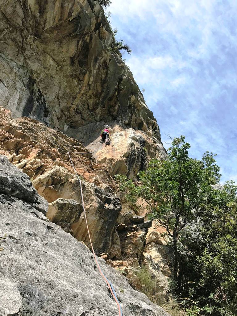 V soboto zjutraj smo se lotili prvih smeri, štartali smo kar ambiciozno za prvi dan, v smereh v bližini našega kampa Zoo. Nekaj navez nas je po boju s težjimi detajli, previsi, prevelikimi plezalniki in v mojem primeru posluževanju samoreševanja, zaključilo plezanje z eno smerjo, ostale naveze so pod kap spravile po dve smeri. Mišice so se na ta dan pospešeno ogrevale.