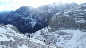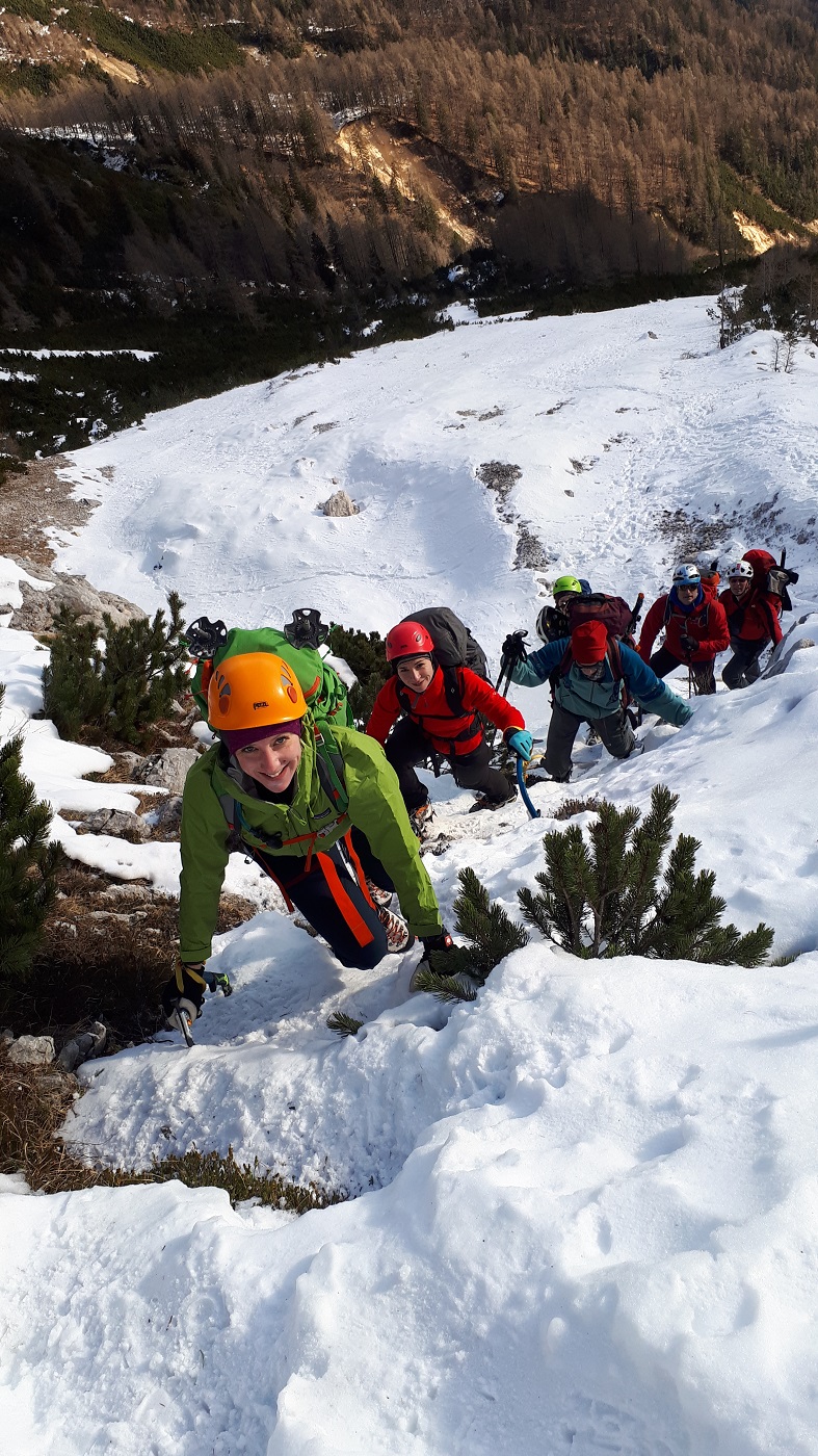 Največ vetra smo bili deležni ravno na parkirnem prostoru, višje gori ni pihalo,  nekaj malega še na sedlu Gulce in na samem vrhu. Najprej nas je pot peljala čez gozd, koraki po šelestenju jesenskega listja in temperatura zraka 5 stopinj,  niso nič kazali, da je v hribih prava zima sicer z malo manj snega a s pravimi zimskimi temperaturami. Sneg se začne nekje na višini 1500m, ko stopimo na prečno pot Poldov rovt-Vtaško sleme. Po poti nadaljujemo malo v levo in ko opazimo možica zapustimo stezo in se podamo desno gor v nekakšno grapo.