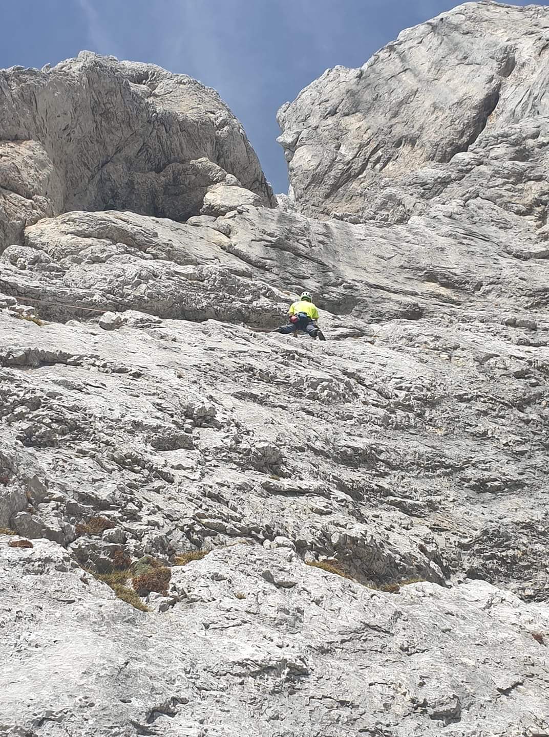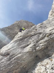 V iskanju sonca, smo se v nedeljo 13.10.2019 skozi Repov kot odpravili proti Planjavi. Cilj je bila smer Sonček. Zaradi ocene smeri sva bila z Janom enotna, da pleza Nejc celo smer v vodstvu. Če nas je v vstopu smeri še malo zeblo, pa nas je drugi raztežaj dodobra ogrel. Malo zaradi že žgočega sonca, predvsem pa zaradi platk s travnatimi luknjicami, kjer je slaba možnost nameščanja dodatnega varovanja. Čisto nasprotje pa je bil 5.R (VI+), kjer je poleg klinov nameščena še pomožna gurtna, s katero si lahko pomagaš če res ne gre čez. Je pa v obeh najtežjih raztežajih skala res dobra. Za izstop iz smeri smo izbrali zadnja 2.R smeri Sobotna.