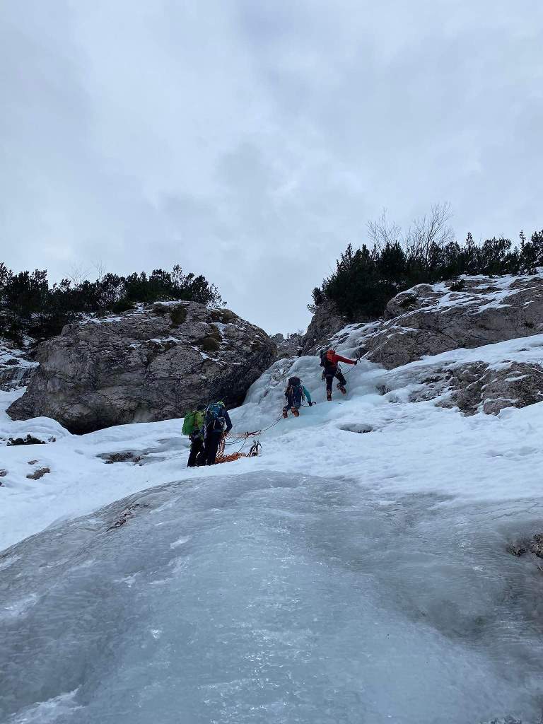 Minulo nedeljo smo se s Tanjo, Nino, Juretom V. in Matejem odpravili poskusit led v Logarski dolini. Tam sta se nam pridružila še Luka in Jure P. Nismo pretiravali z zgodnjim odhodom, zato je v dolini že mrgolelo plezalcev in pohodnikov.