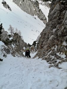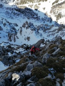 Za začetek podaljšanega vikenda smo se odločili, da bi šli pogledat grape v Begunjščico. Ker letos ni toliko snega in se lahko pojavi kakšen skalni skok, za vsak primer s sabo vzamemo nekaj dodatne opreme poleg derez, čelade in cepinov. Za začetek se odpravimo do Šentanskega plaza. Tam si nadenemo opremo in nadaljujemo po plazu navzgor do vstopa v Lenuhovo grapo. Že po nekaj metrih je prvi skalni skok, po njem pa mu sledita še dva manjša v celotni smeri. Razmere v Lenuhovi grapi so mešane od skalnega skoka pa do leda in mehkega snega. Na vrhu smeri se okrepčamo in nadaljujemo na vrh Begunjščice. Iz vrha sestopimo po Centralni grapi ter se odločimo, da se povzpnemo nazaj po Y grapi. Odločimo se za lev izstop, ki pa smo ga zadnjih približno 50 metrov preplezali po krušljivih skalah in travi. Na vrhu smo ugotovili, da to ni bil pravi izstop ampak »naša izstopna varianta« :). Tudi pravi izstop pa ni bil nič kaj zalit. Za sestop v dolino smo izbrali še Zahodno grapo, ki nas je pripeljala nazaj do Šentanskega plazu in ob robu smučišča smo odhiteli nazaj v dolino.