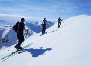 Ker je dan že dolg, ni bilo potrebe po hitenju, ritem vseh šestih dni je bil podoben. S kombijem do izbranega hriba, vožnje nikoli več kot pol ure. Vsak dan smo naredili okrog tisoč višincev. Večinoma smo šli na dva vrha, oz. se spustili v dve dolini. Že prvi dan smo ugotovili katere flanke so najboljše. Hribi so visoki med 700 in 1200 mnv in se iztekajo do gladine Severnega Atlantika, dreves ni, pobočja so enakomerna in večje naklonine, zato je občutek kot da štartaš na 1500m. Temperature so bile od -5 ponoči do +5 podnevi, vreme je že sicer na Islandiji precej spremenljivo, ture smo torej prilagajali lokalni vremenski situaciji. Enkrat je bil na vrhu snežni vihar, enkrat megleno, dvakrat sončno brez oblačka, sicer pa vedno enakomeren spomladanski srenc.