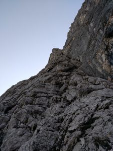 Z Andrejem sva 5.6.2022 šla v v severno steno Debele peči plezat Sekločevo smer. Andrej je imel smer že dolgo na seznamu želja, jaz pa se dobrim stvarem seveda težko odpovem. V Krmi pri Kovinarski koči sva pričela s turo po lovski poti. Glede na to, da je bil prejšnji dan dež je bilo gozdnato vznožje zelo mokro. Mučila naju je tudi orientacija, saj sva zgrešila prehod čez grapo in 150m višincev naredila čez “fardamono bukovje”. Hitro sva bila takšna kot bi padla v bazen, pa še pri steni nisva bila! Tak je to, a za užitek je potrebno potrpeti. Po dobrih 2.5h znoja, vlage in prask sva prišla pod vznožje stene. Sicer me je skrbelo, da bo smer mokra, a od blizu je delovalo suho. Smer dokaj hitro preide v V stopnjo plezanja, precej je prečk, kar se nama je še posebej dopadlo. Po 200m sledi detajl smeri, kamin, ki pa je bil moker. Kljub temu nama je uspelo brez nerodnosti preplezati. Nato se Sekločeva združi z Jesih-Potočnikovo smerjo in do vrha sledi plezanje IV stopnje predvsem po krasnih prečkah. Omeniti velja, da je po celotni smeri precej “šodra” na določenih mestih in svetujem, da se pleza samo ena naveza naenkrat, da se izogne nepotrebnemu letenju kamenja po čeladi. Smer je v celoti polna klinov in ni bilo potrebno nič zabijati le iz gole romantike se je zadnje sidrišče naredilo iz osebnih klinov. Samo plezanje nama je res hitro šlo in brez ovir. V dobrih 4 urah sva bila na vrhu. Za sestop je možna markirana pot ali lovska pot, ki je 1.5h krajša. Odločila sva se za slednjo, saj imava rada več plezanja in sva bila z želodci že v gostilni. Sestop po lovski poti čez grapo in poplezavanje navzdol do II stopnje, nama je vzelo 2 uri. Seveda je tekom sestopa sledila obvezna debata o plezalni literaturi in plezariji. Sam se sredi gozda seveda še enkrat izgubim in sestopim na drugi strani koče. »Lovska, lovska je bla ta«!