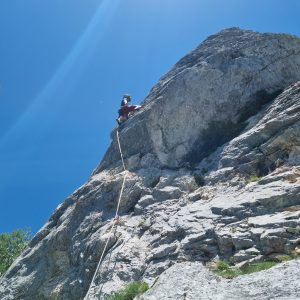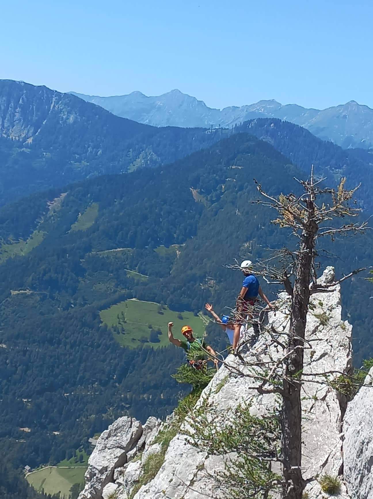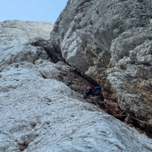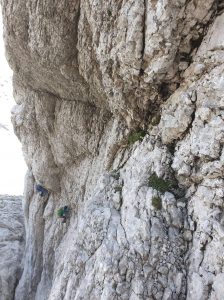 V soboto smo se z Bistijem in Julijanom odpravili na Jezersko. Splezali smo Jubiljeno smer v Dolgem hrbtu in sestopli čez Mlinarsko sedlo. V nedeljo pa se pridružili še ostali ŠAO ekipi v Velikem vrhu.