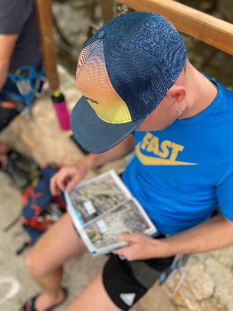 Zbudili smo se v sončno petkovo jutro. Kakšen luksuz, da lahko spiš za odtenek dlje, kot ponavadi – do 6h. Po jutranjem teku po kanjonu, obilnem zajtrku in močni kavi smo se tečajniki odpravili frikat v kanjon, bolj izkušeni člani pa so ubrali večraztežajne smeri.