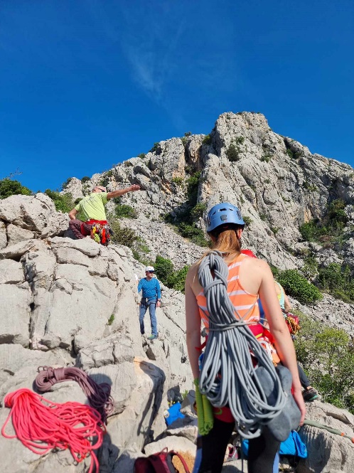 Navezi Mijota in Urške ter Silve in Petre sta se podali v Tinino smer, Vida, Tanja in Sergej pa v Tinino in Severno rebro. Žan in Jure sta šla v Akademsko, Vid in Bisti pa v Bračno. Lea in Klemen sta s Tanjo lezla Barba Antin, Mitja in Nikita pa sva z Alenom na čelu premagala Nosoroga.