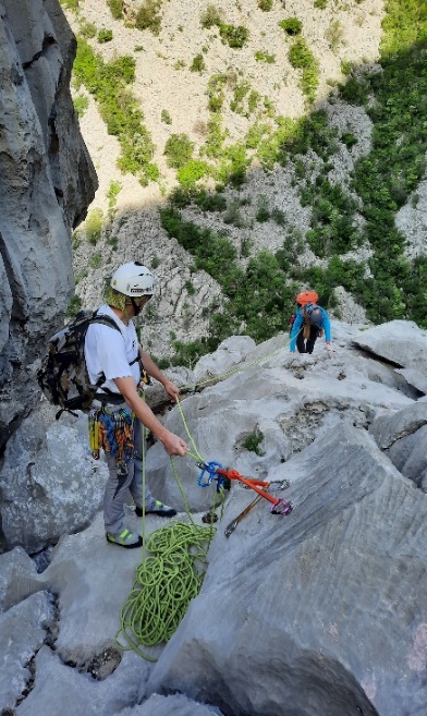 Utrdili smo znanje, ki smo ga do sedaj pridobili na šoli, naučili pa smo se tudi česa novega. Definitivno pa potrebujemo še ogromno prakse, da bomo manevre lahko stresli iz rokava. Po celem dopoldnevu na soncu, smo se prijetno utrujeni spustili nazaj do parkirišča, kjer smo tečajniki obsedeli v senci, inštruktorji pa so nas razvrstili po navezah, v katerih smo plezali v nedeljo.