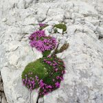 V jutranji zori smo se urno podali proti že na daleč razvidnem vstopu v steno, ki pa je že razkazovala vso svojo mogočnost. Ura in pol dostopa ja hitro minila, a že kar na začetku smo naleteli  na trojno navezo iz Ljubljane. Posledično se nam ni mudilo, tako da sva z Bazotom pod steno zgradila še vsak svoj možicelj.